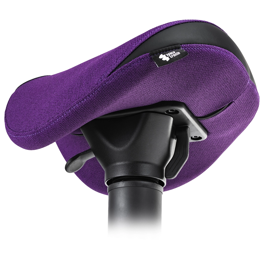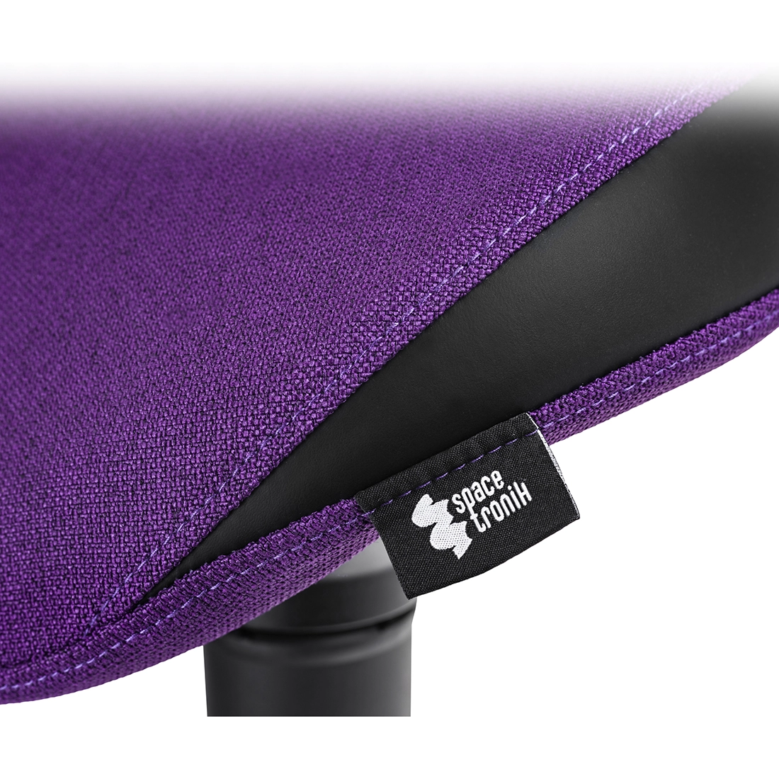 Wyprofilowane siedzisko siodłowe ułatwia zachowanie prawidłowej postawy ciała i zmniejsza obciążenie dolnego odcinka kręgosłupa. To idealne rozwiązanie dla osób pracujących przy biurku przez wiele godzin. Tapicerka w kolorze intensywnego fioletu, z kontrastowymi detalami ze skóry syntetycznej, dodaje nowoczesnego charakteru i wyróżnia krzesło na tle klasycznych modeli biurowych.