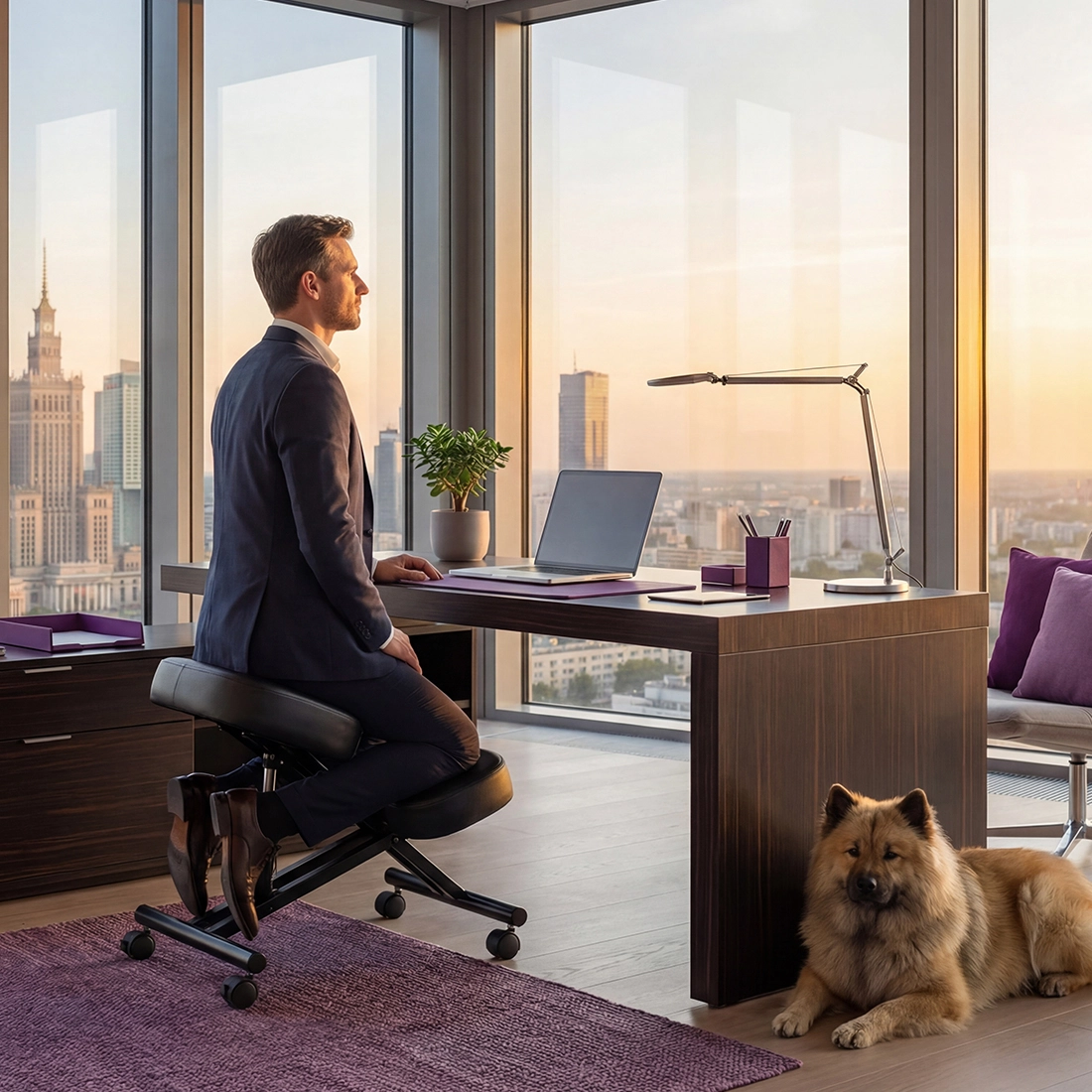 Jeśli wielogodzinna praca przy biurku kończy się dyskomfortem dolnego odcinka pleców, ten ergonomiczny klęcznik może być skutecznym rozwiązaniem. Jego specyficzna konstrukcja wymusza otwarty kąt biodrowy, co sprzyja utrzymaniu naturalnej krzywizny kręgosłupa i odciąża odcinek lędźwiowy, oferując stabilne podparcie dla użytkowników o wadze do 125 kg. To nowoczesna alternatywa dla tradycyjnego fotela, zaprojektowana z myślą o higienie pracy i komforcie siedzenia.