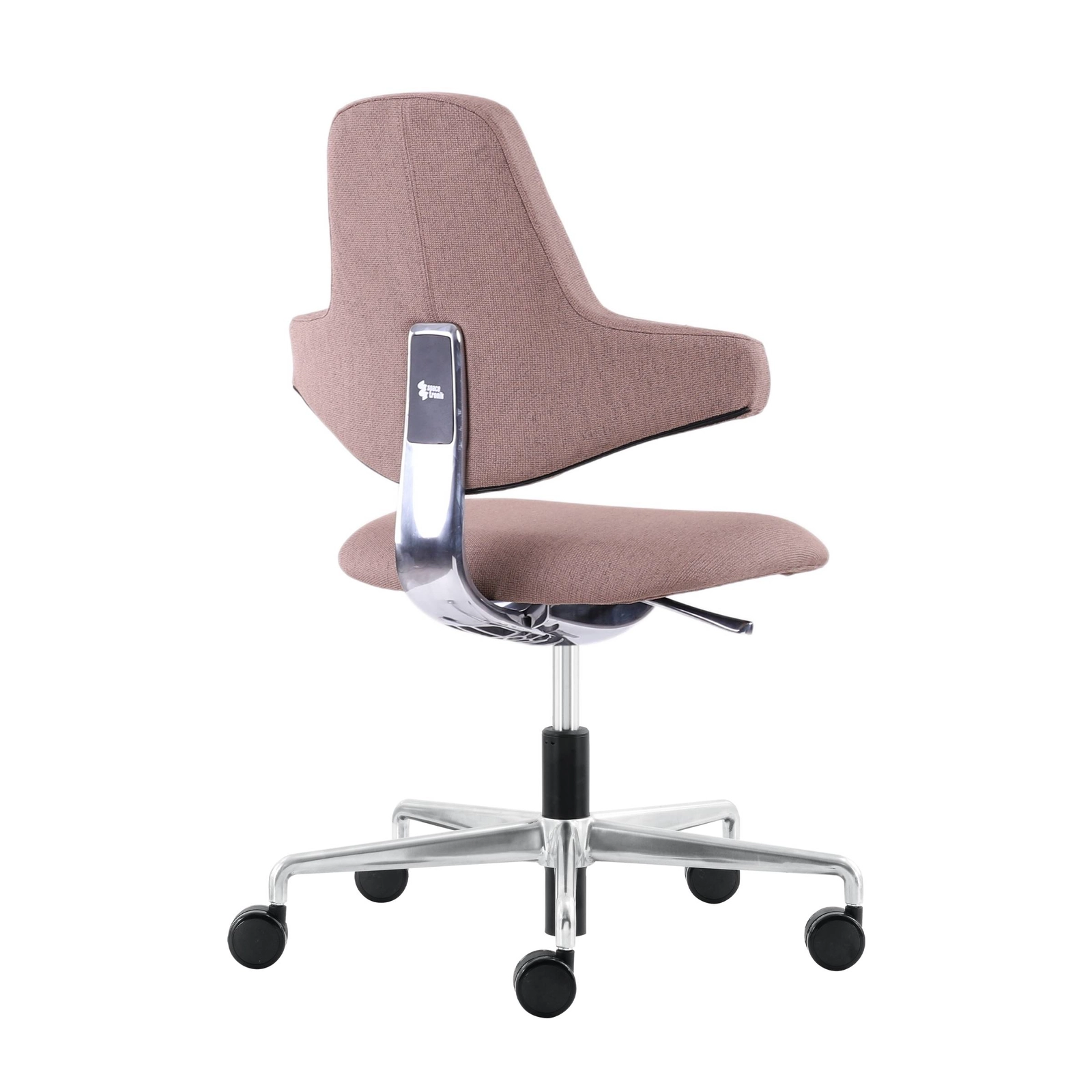 Pięcioramienna podstawa z polerowanego aluminium gwarantuje stabilność i elegancki wygląd. Dzięki nylonowym kółkom o średnicy 6 cm krzesło zachowuje mobilność i nie niszczy podłogi. Lekkość konstrukcji w połączeniu z solidnością sprawia, że model ten dobrze sprawdza się w biurach i gabinetach.