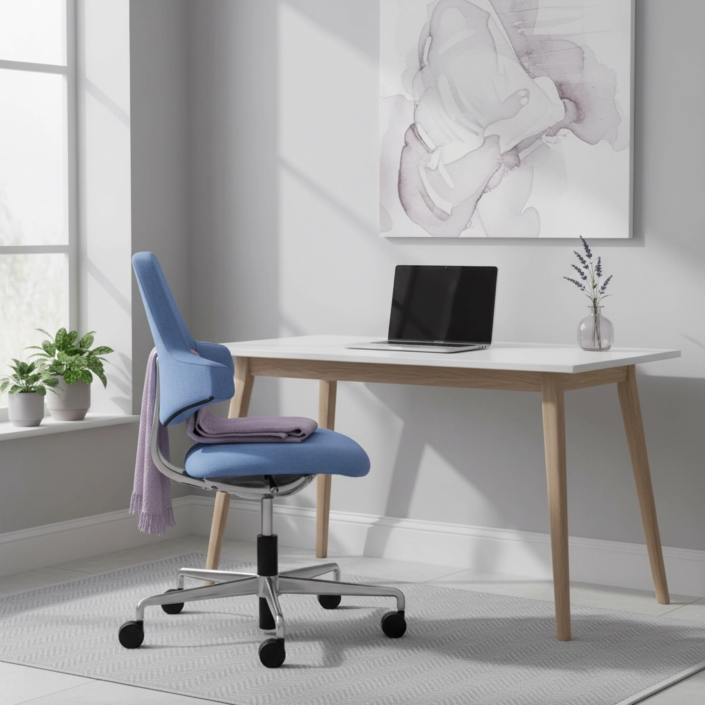 Stałe, wysokie oparcie zapewnia prawidłowe podparcie pleców w trakcie pracy. Kształt i wysokość dobrano tak, by nie ograniczać ruchów i jednocześnie dbać o wygodę odcinka lędźwiowego. Oparcie "obejmuje plecy" - ma proporcje dobrane do wielogodzinnego siedzenia, bez przymusu sztywnej pozycji, ale z realnym wsparciem dla kręgosłupa. Sprawdzi się zarówno przy pracy biurowej, jak i podczas spotkań czy analiz wymagających skupienia.