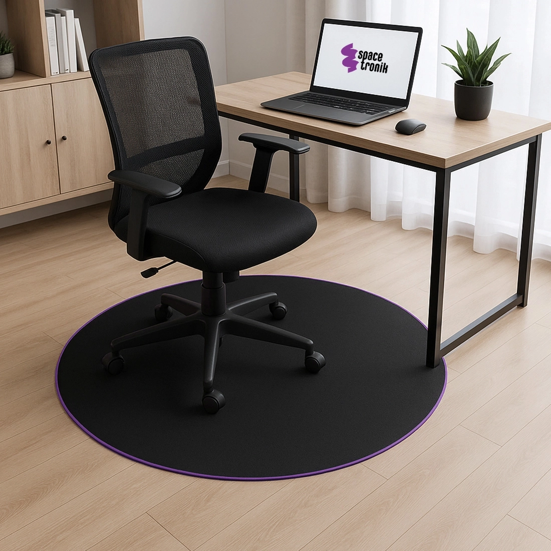 Mata Spacetronik SPB047 ma średnicę aż 1000 mm, co daje Ci pełną swobodę poruszania się na krześle. Duży obszar ochrony sprawia, że nie musisz obawiać się, że wyjedziesz poza matę. To idealne rozwiązanie dla graczy i osób spędzających długie godziny przy biurku. Zyskujesz wygodę, przestrzeń i pewność, że Twoja podłoga jest całkowicie chroniona.