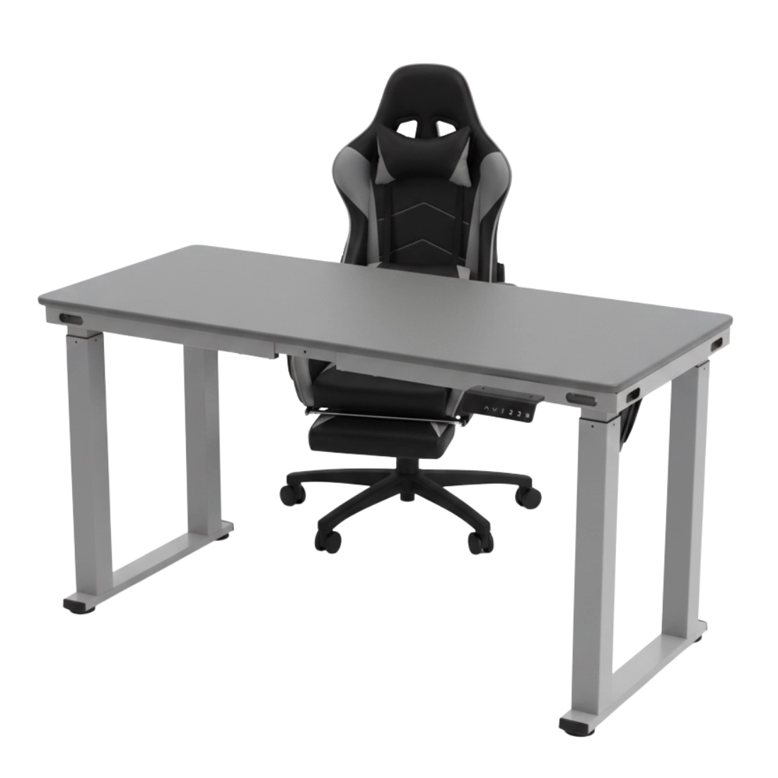 Kompletny zestaw do nowoczesnego stanowiska: stabilne biurko elektryczne z czteronożnym stelażem SPE426G oraz blatem MDF malowanym proszkowo w kolorze Steel Grey, a do tego wygodny fotel biurowo-gamingowy Spacetronik Rally z wysuwanym podnóżkiem i poduszkami pod lędźwie oraz kark. To połączenie stworzone dla osób, które pracują przy komputerze, uczą się, tworzą lub grają — i chcą mieć jednocześnie ergonomię, porządek na blacie oraz realny komfort siedzenia.