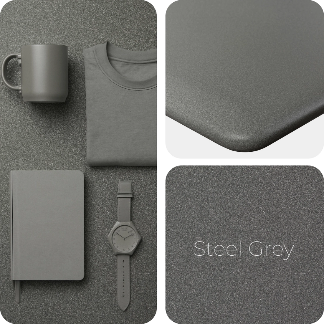 Steel Grey buduje spokojne, nowoczesne tło dla pracy i rozrywki — nie dominuje, a dodaje charakteru. W połączeniu z czarną bazą i dodatkami wprowadza wrażenie porządku, skupienia i „dopieszczonego” stanowiska. To wybór dla tych, którzy lubią minimalizm, ale nie chcą sterylnej nudy.