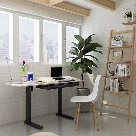 DOLF SPE-F120 zapewnia płynne podnoszenie, pamięć 4 wysokości i cichą pracę <50 dB, a HAVARD-02 oferuje miękkie siedzisko z gęstej pianki, regulowane podłokietniki 4D i wsparcie lędźwi — idealny duet do pracowni, biura i domu.