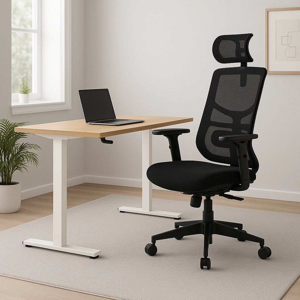 Zmieniaj wysokość blatu bez prądu, ustaw zagłówek i podłokietniki pod siebie. Mniej przeciążeń, lepsze samopoczucie i wyższa koncentracja.