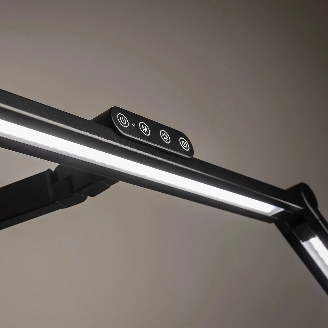 Największa lampa kreślarska Spacetronik Glow D8 została zaprojektowana z myślą o wymagających użytkownikach – grafikach, projektantach, osobach pracujących z dokumentacją techniczną oraz przy komputerze. Szeroki panel świetlny o długości 120 cm, bezcieniowe światło LED, pięć ruchomych przegubów oraz regulacja jasności i temperatury barwowej (3000–6500 K) umożliwiają idealne doświetlenie całego blatu bez męczących cieni i refleksów.