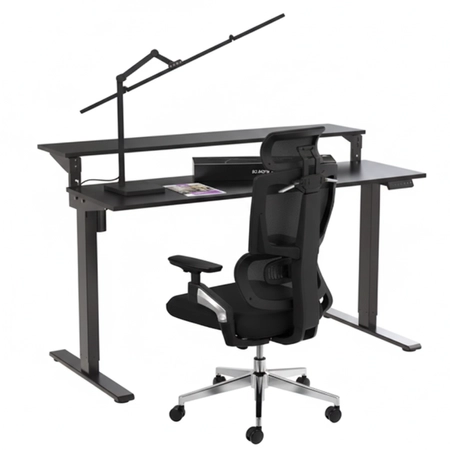 Zestaw ergonomiczny: Biurko elektryczne Spacetronik Moris SPE-O133BB + Fotel Spacetronik BARD + Lampa kreślarska Glow D8