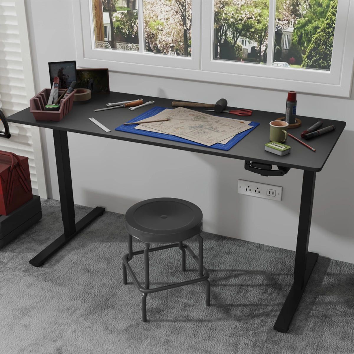 Bez kabli i hałasu: płynne unoszenie i opuszczanie blatu, stabilna stalowa rama, udźwig do 40 kg. Idealne do domu i biura.
