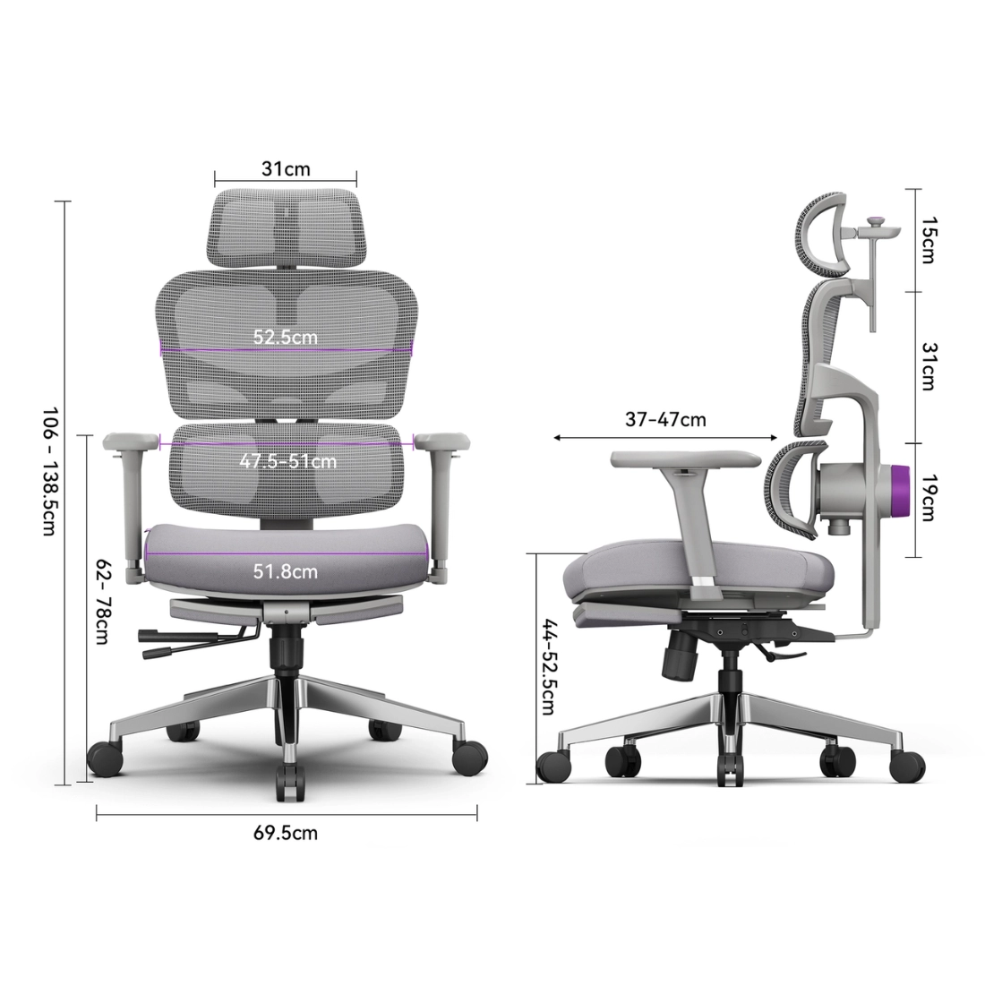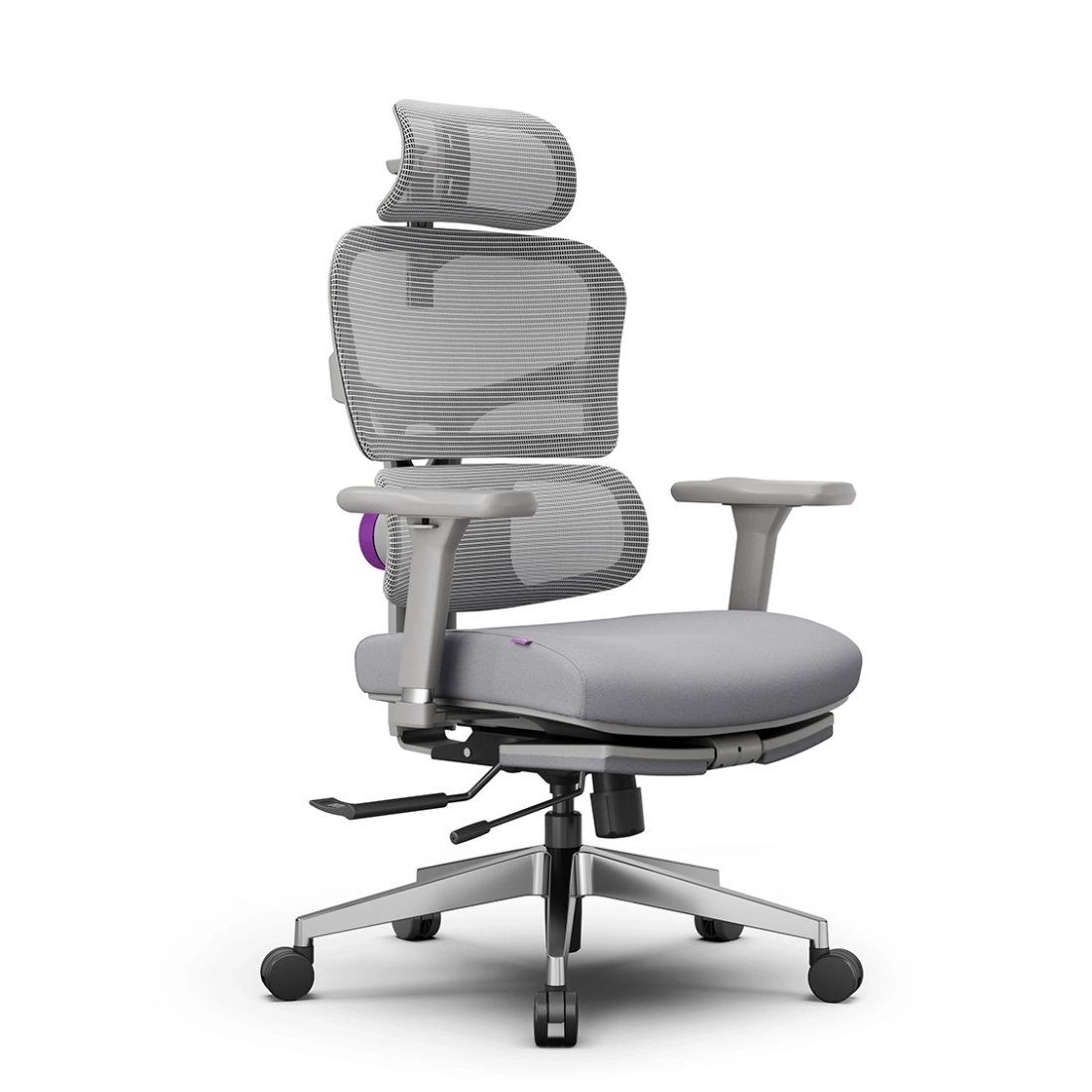 Ergonomiczne oparcie, automatyczne wsparcie lędźwi, gęsta pianka siedziska i miękkie nakładki PU na podłokietnikach pomagają utrzymać naturalną postawę i zmniejszyć napięcia mięśni.