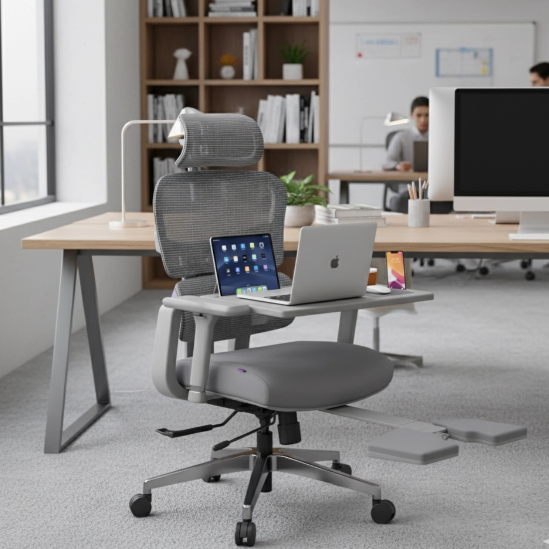 Połącz wygodę fotela z funkcjonalnością przenośnego blatu. Spacetronik LUMBO 44 zapewnia dodatkowe wsparcie pleców, regulowany zagłówek 2D i podłokietniki 4D, a SPC-LUMBO zmienia fotel w mobilne stanowisko – z częścią na laptopa, miejscem na mysz, uchwytami na tablet/telefon oraz kubek. Pracuj, ucz się i odpoczywaj tam, gdzie chcesz.