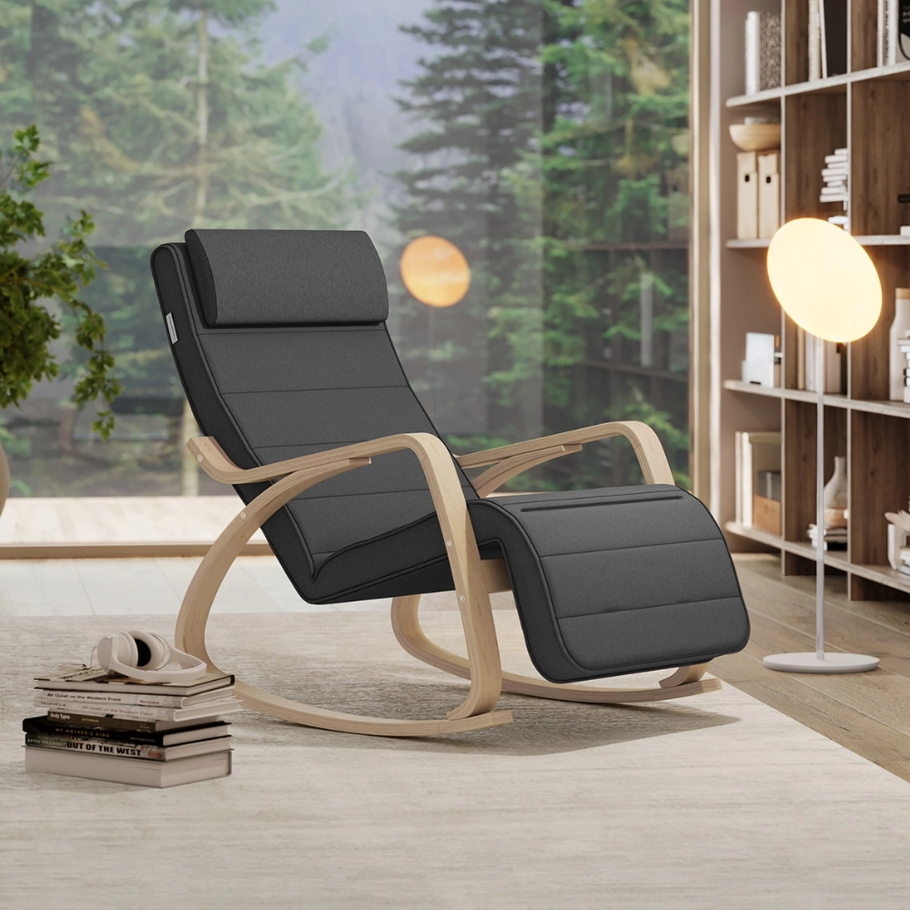 Fotel został zaprojektowany z myślą o relaksie w domu. Kołysząca konstrukcja na płozach pozwala bujać się w sposób naturalny i bezpieczny, co sprzyja wyciszeniu i odpoczynkowi. Dodatkowo 5-stopniowa regulacja podnóżka ułatwia dopasowanie pozycji do Twoich preferencji – od siedzenia po bardziej wypoczynkowe ułożenie. Miękki zagłówek jest odpinany (mocowanie na rzepy), dlatego łatwo ustawisz podparcie karku i zadbasz o wygodę podczas dłuższego korzystania.