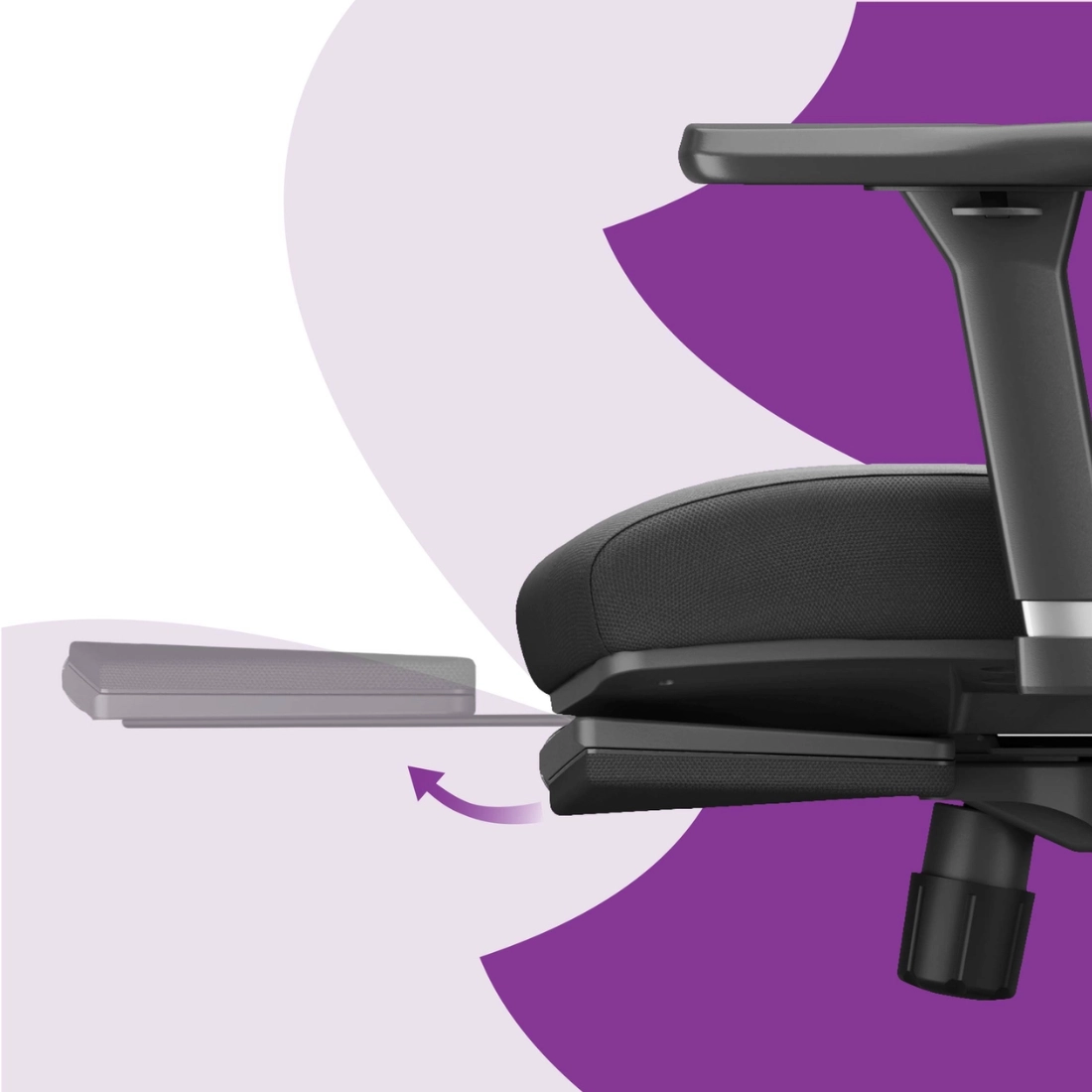 Miękkie siedzisko z gęstej pianki, szeroka regulacja i mobilna nakładka tworzą zestaw, który poprawia ergonomię i wygodę od pierwszego dnia pracy. Podnóżek pomaga zregenerować się w krótkich przerwach.