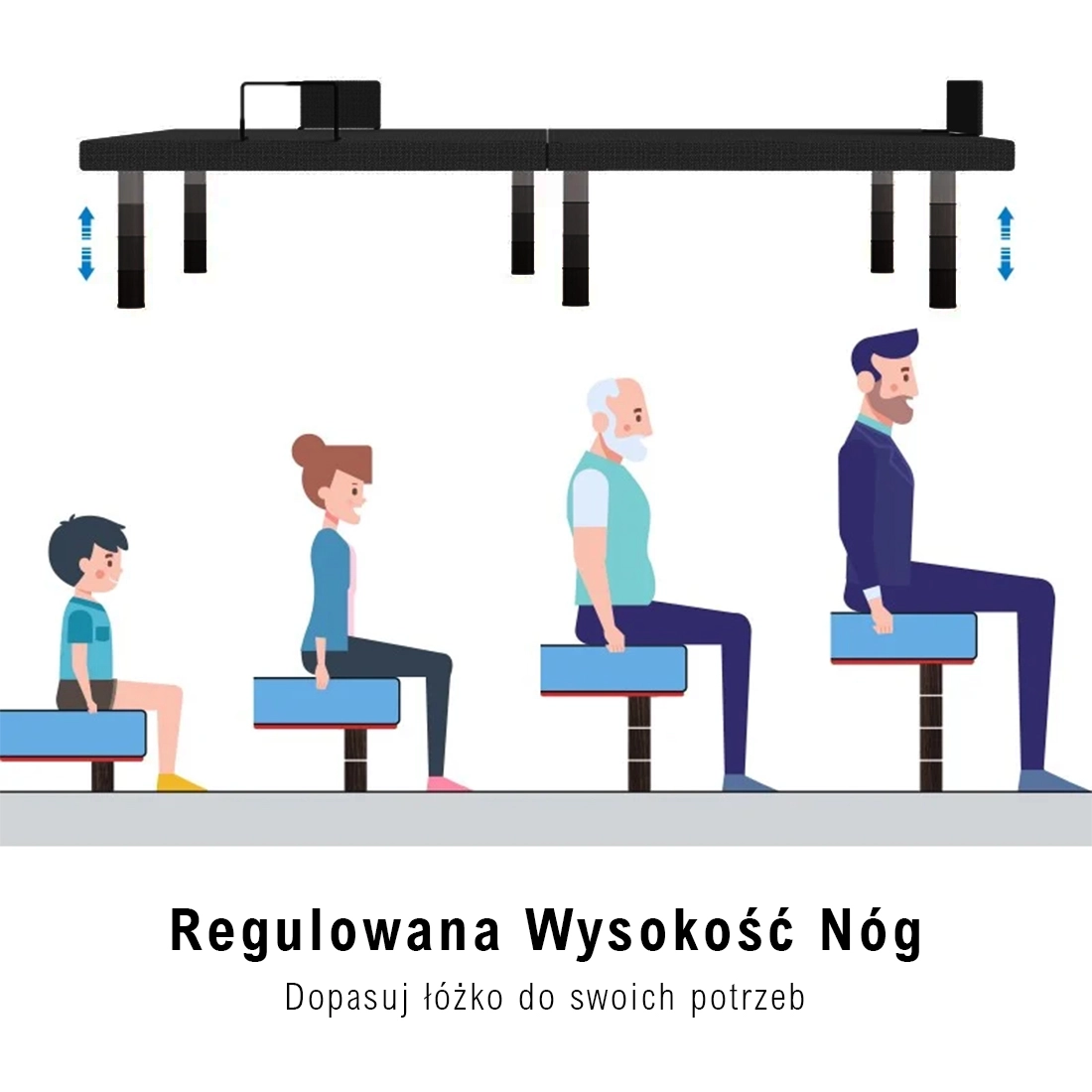 - Bezprzewodowy pilot- łóżkiem można sterować wygodnym pilotem na baterie