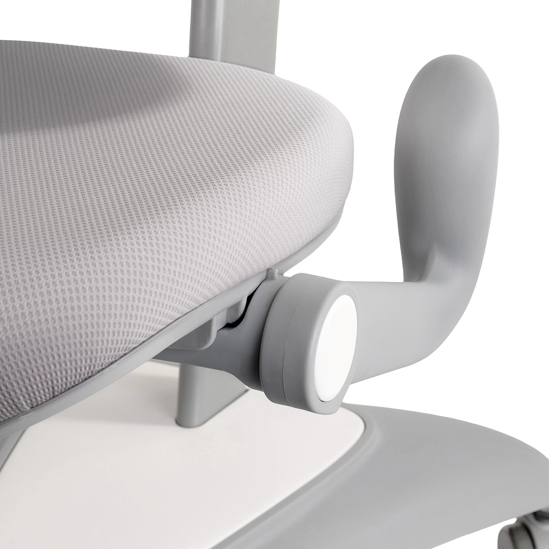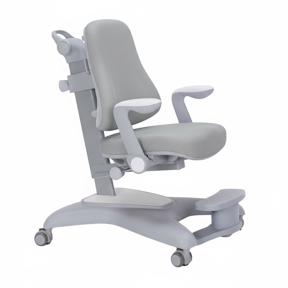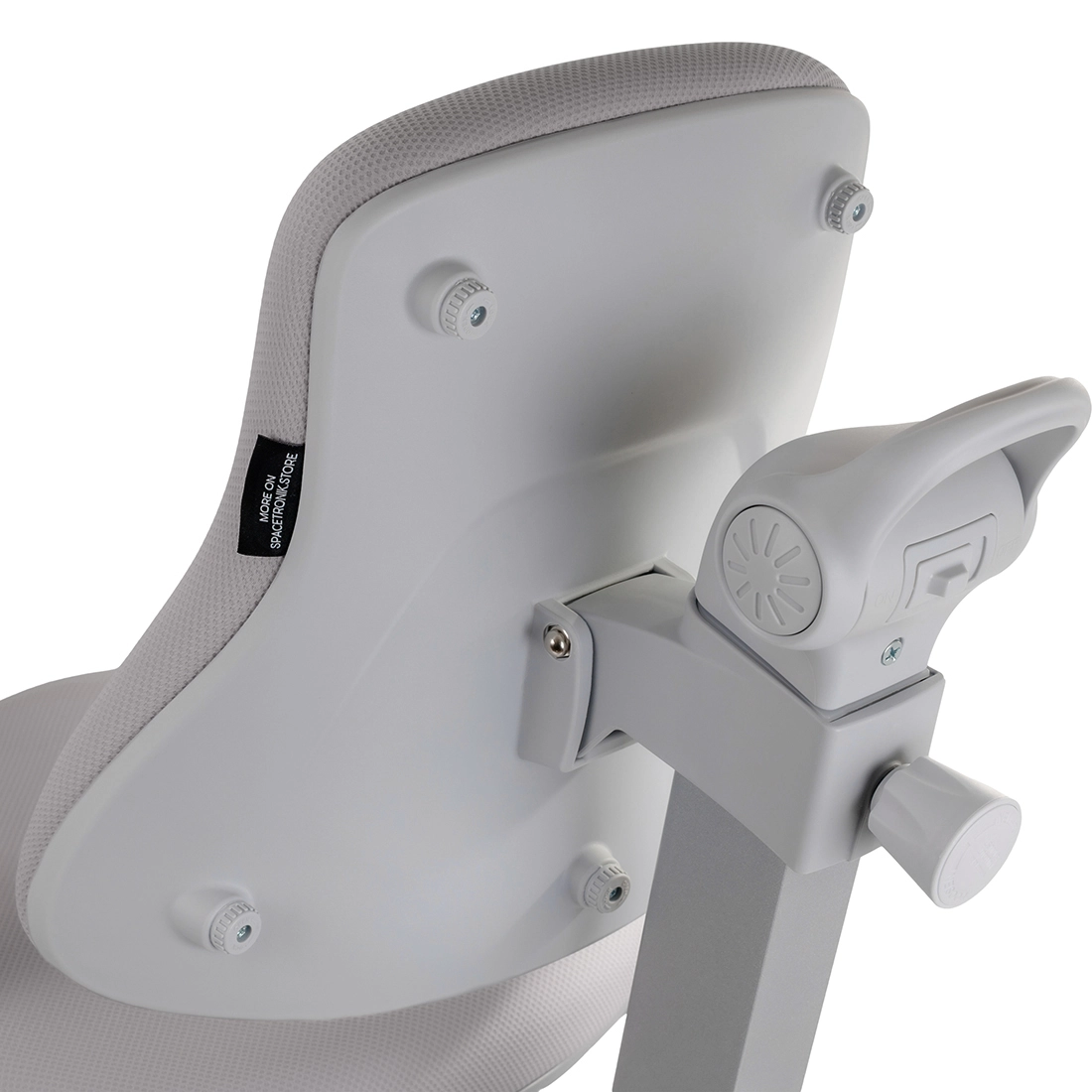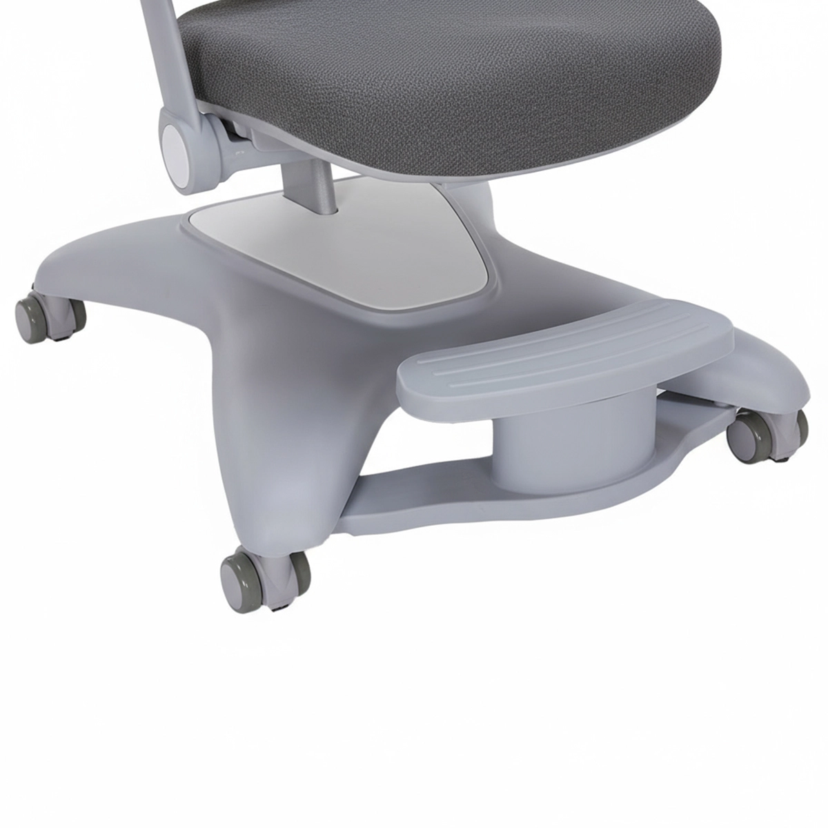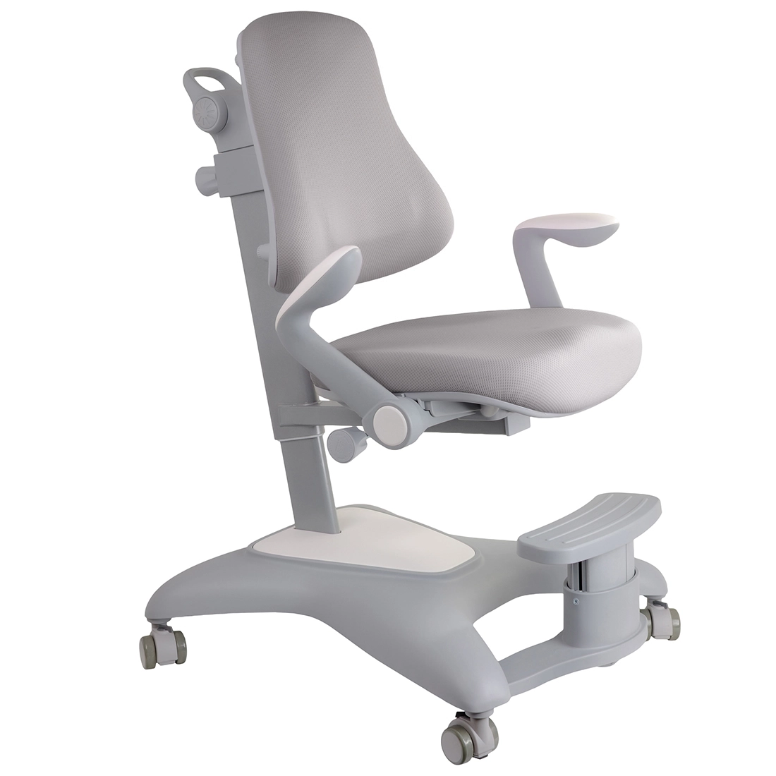 • Krzesło do biurka dla dzieci Spacetronik SPC-XD-13. Fotel dziecięcy został wyposażony w 5 mobilnych kółek z przełączaną blokadą grawitacyjną, regulowany podnóżek i regulowane oparcie i siedzisko. Kolor szary, regulowana wysokość 75.5-97.5 cm.