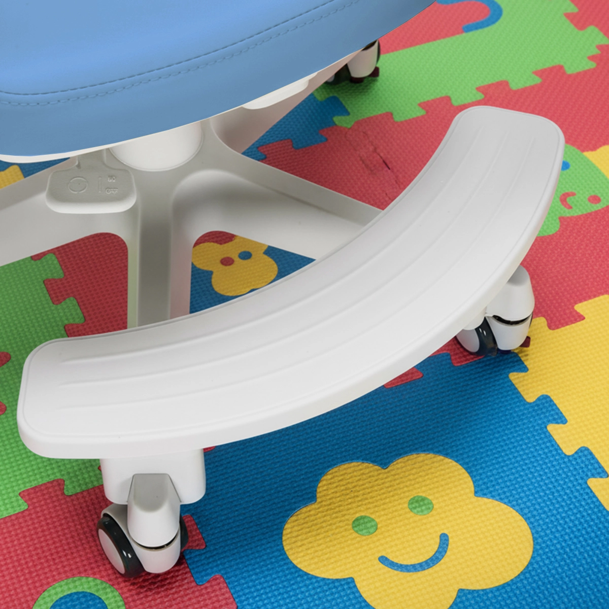 • Krzesło do biurka dla dzieci Spacetronik SPC-XD-09. Fotel dziecięcy został wyposażony w 5 grawitacyjnych kółek, regulowany podnóżek, oparcie i siedzisko z podłokietnikami. Ergonomiczny wybór do nauki i zabawy. Kolor niebieski regulowana wysokość 81-97 cm.