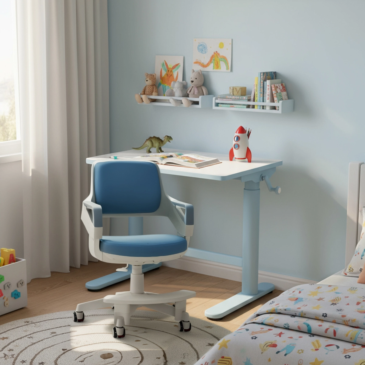 Model SPC-XD-09 to wygodne, ergonomiczne krzesło dla dziecka, które ułatwia naukę i codzienne obowiązki. Obrotowa podstawa zapewnia mobilność, dzięki czemu maluch może swobodnie sięgnąć po książki, przybory lub tablet bez wstawania. Grawitacyjne kółka natomiast dzięki swojej blokadzie zadbają o odpowiednią stabilizację w trakcie nauki. To nie tylko wygoda, ale też sposób na wspieranie rozwoju motorycznego i samodzielności najmłodszych. Idealne jako krzesło do biurka ucznia w pokoju dziecięcym.