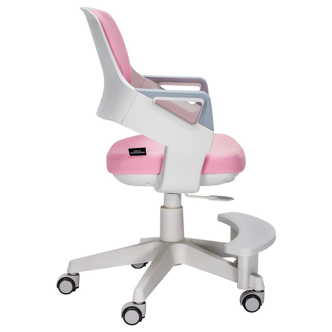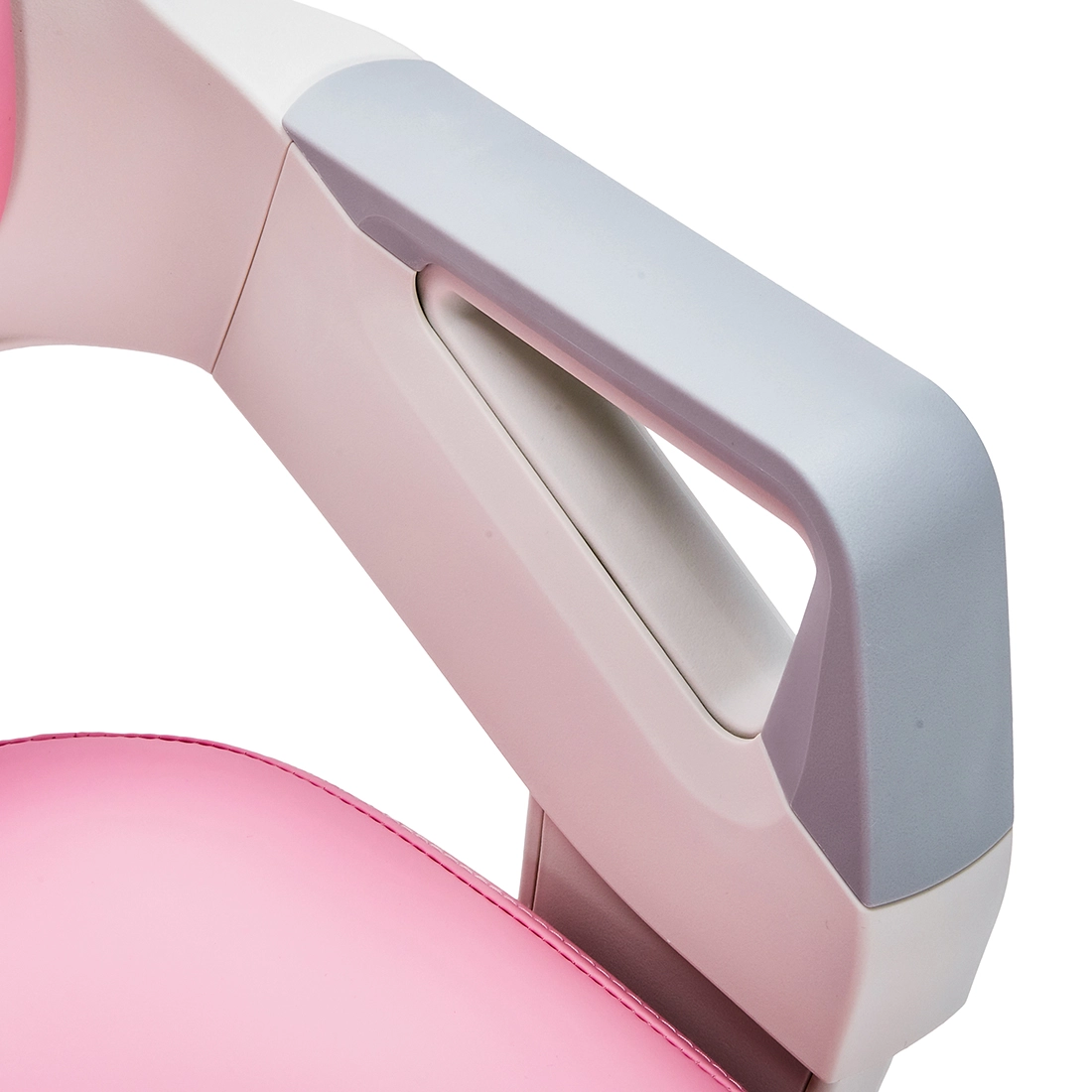 Połączenie różowej tapicerki z szarą podstawą i ramą sprawia, że krzesło świetnie wpisuje się w wystrój pokoju dziecka. Jest uniwersalne – pasuje zarówno dla chłopca, jak i dziewczynki.