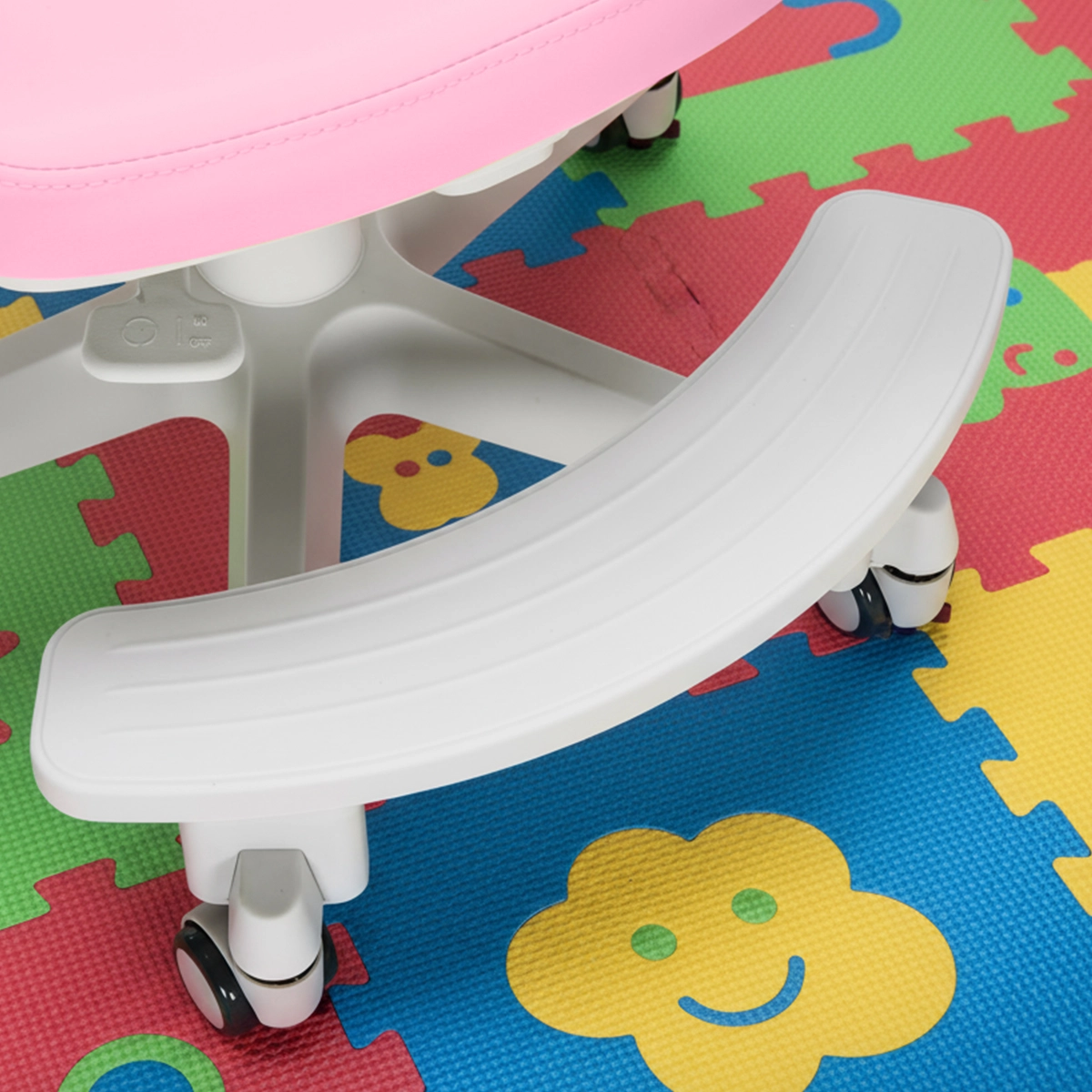 Wszystkie elementy wykonano z trwałych i bezpiecznych materiałów - od oparcia, przez solidną podstawę i ramę z wysokiej jakości tworzywa sztucznego. Zaokrąglone krawędzie, mobilne kółka i wygodny podnóżek chronią Twoje dziecko podczas codziennego użytkowania.