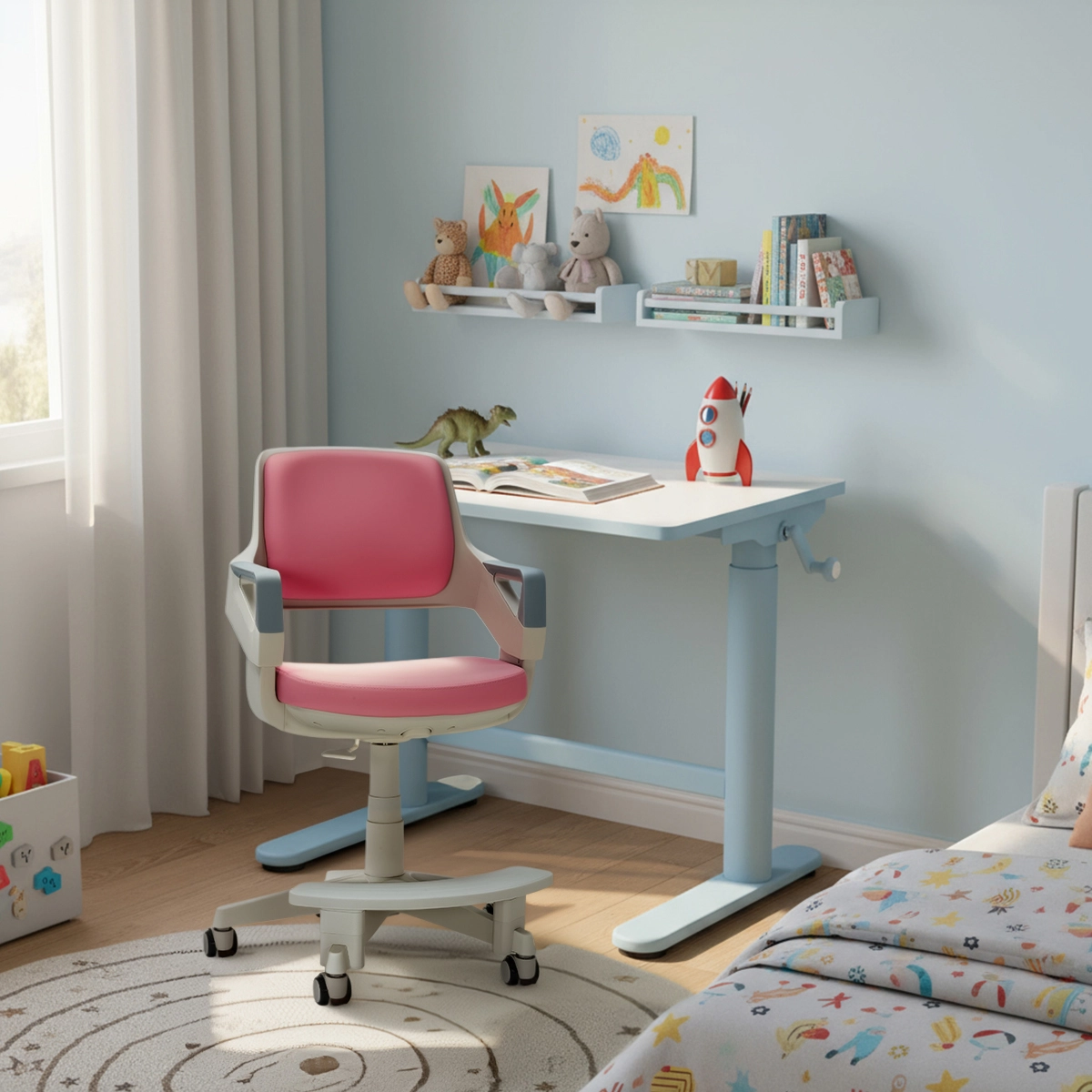 Model SPC-XD-09 to wygodne, ergonomiczne krzesło dla dziecka, które ułatwia naukę i codzienne obowiązki. Obrotowa podstawa zapewnia mobilność, dzięki czemu maluch może swobodnie sięgnąć po książki, przybory lub tablet bez wstawania. Grawitacyjne kółka natomiast dzięki swojej blokadzie zadbają o odpowiednią stabilizację w trakcie nauki. To nie tylko wygoda, ale też sposób na wspieranie rozwoju motorycznego i samodzielności najmłodszych. Idealne jako krzesło do biurka ucznia w pokoju dziecięcym.