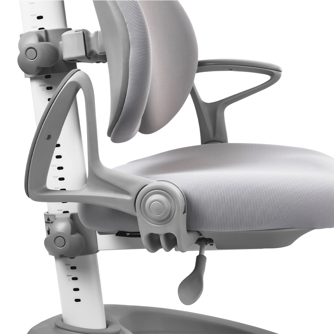 Wybór odpowiedniego krzesła do pokoju dziecięcego może mieć większe znaczenie, niż myślisz! W końcu zdrowie Twojego dziecka jest niesamowicie istotne. W momencie, gdy jest w wieku przedszkolnym / szkolnym następuje w nim największy rozwój zarówno mentalny, jak i fizyczny. Dlatego warto już od samego początku budować w nim zdrowe nawyki. Takie jak np. zdrowa, wyprostowana pozycja ciała w trakcie siedzenia. Jednak, żeby dziecko mogło przyjąć taką postawę, trzeba zapewnić mu odpowiednią wygodę. Dlatego też dobre krzesło powinno mu pozwalać na bieżąco dostosowywać pozycję poszczególnych elementów w krzesełku dziecięcym. W przypadku fotela SPC-XD-05 masz możliwość regulacji: