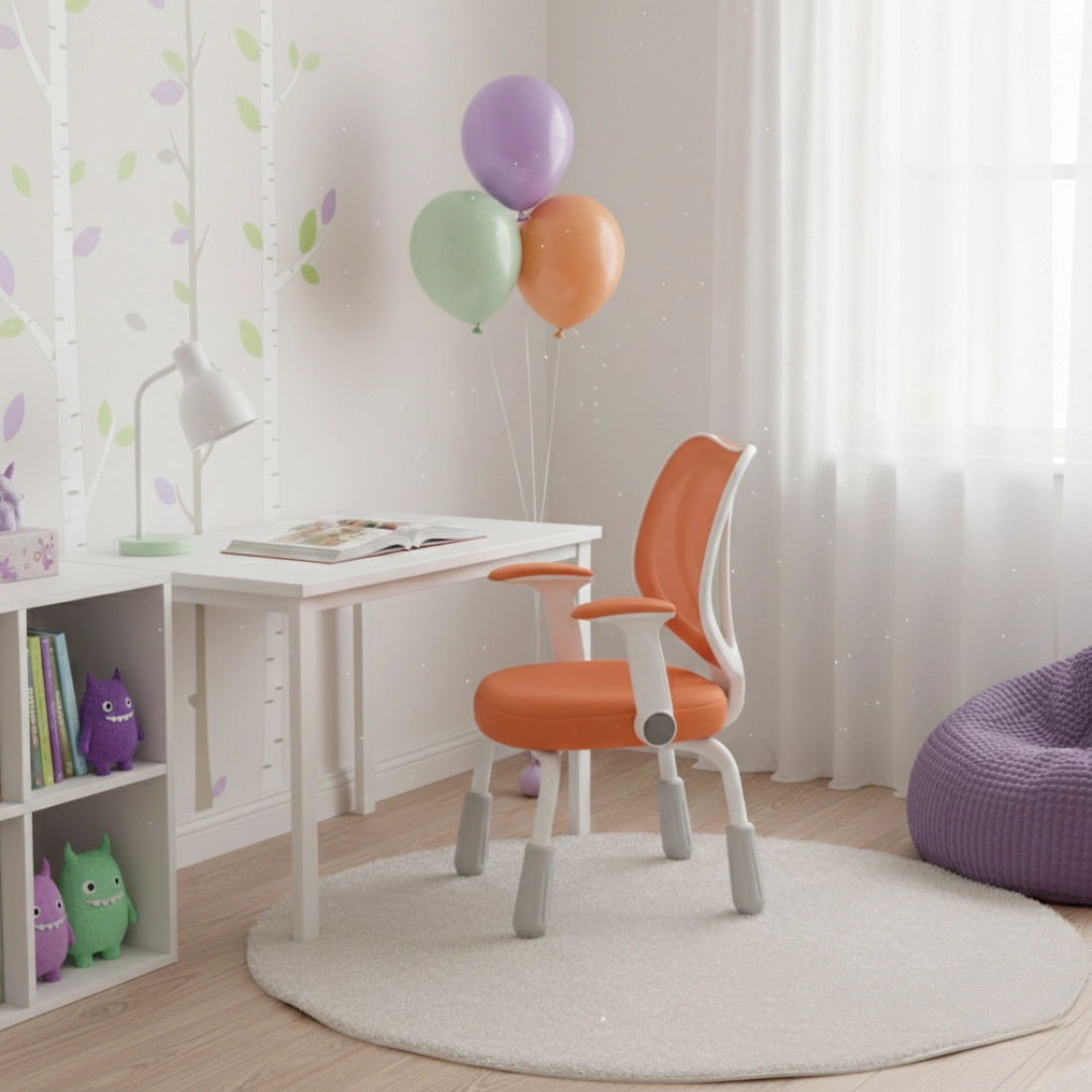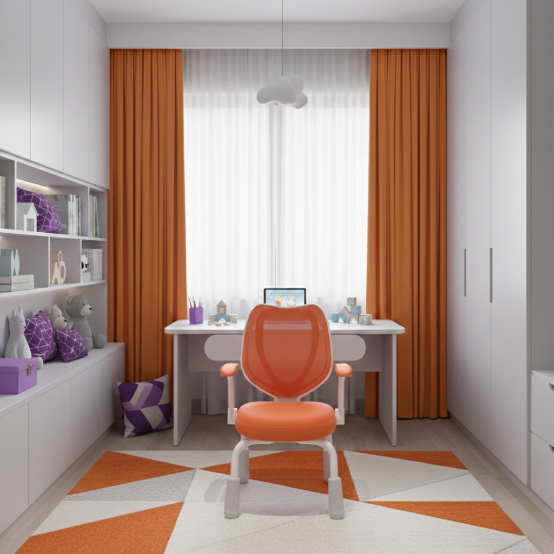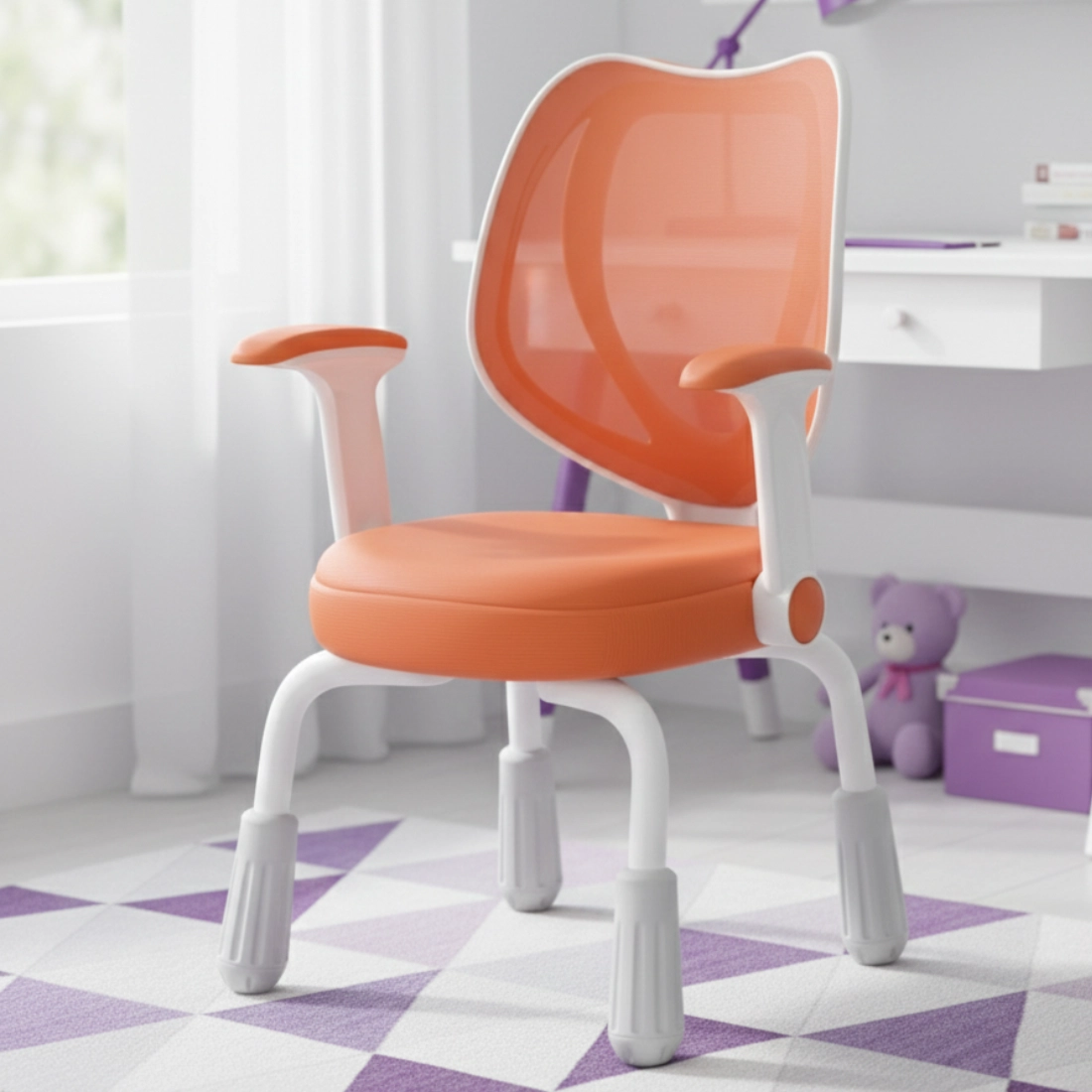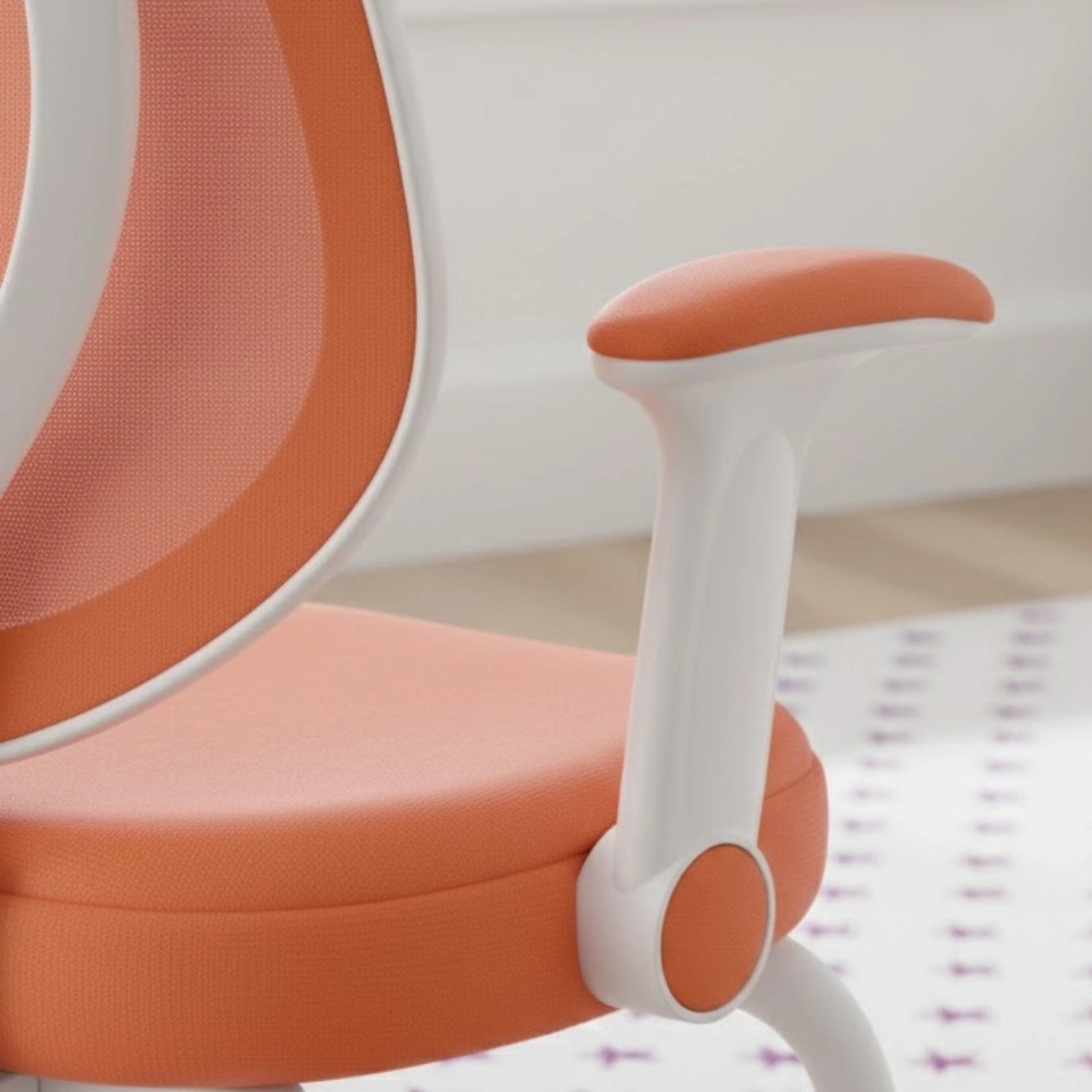 Pomarańczowe wykończenie wnosi energię do pokoju dziecka i sprawia, że stanowisko do nauki wygląda ciekawiej. To dobry wybór, jeśli chcesz dodać wnętrzu koloru, ale zachować praktyczną funkcjonalność krzesła.