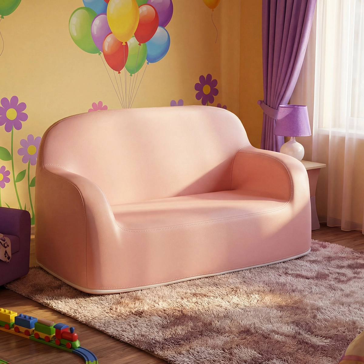 Wymiary sofy zostały dobrane w taki sposób, żeby dopasować się zarówno do chłopców, jak i dziewczynek. Szerokość 76 cm, wysokość 49 cm, czy też szerość siedziska 55 cm. Dzięki takim wymiarom z sofy korzystać może np. rodzeństwo. Natomiast uniwersalny różowy kolor pozwoli z łatwością dopasować sofę do każdego pokoju.