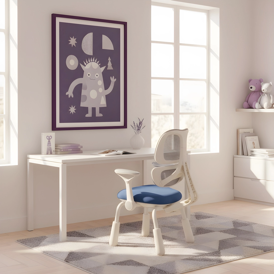 Każdy centymetr przestrzeni w pokoju dziecka jest na wagę złota. Projektanci krzesła Spacetronik XD doskonale to rozumieją, dlatego wyposażyli je w niezwykle praktyczną funkcję odchylanych podłokietników. Gdy krzesło nie jest używane, wystarczy jeden prosty ruch, aby unieść podłokietniki do pionu. Pozwala to na całkowite wsunięcie krzesła pod blat biurka, co zwalnia miejsce na podłodze do zabawy i ułatwia utrzymanie porządku. To proste, ale bardzo użyteczne rozwiązanie, które docenią zarówno dzieci, jak i rodzice dbający o organizację przestrzeni.