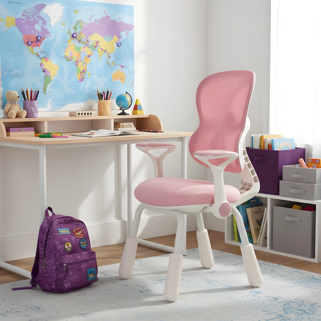 Pełna Regulacja Wysokości: Krzesło rośnie razem z dzieckiem, zapewniając prawidłowe ułożenie nóg i dopasowanie do biurka.