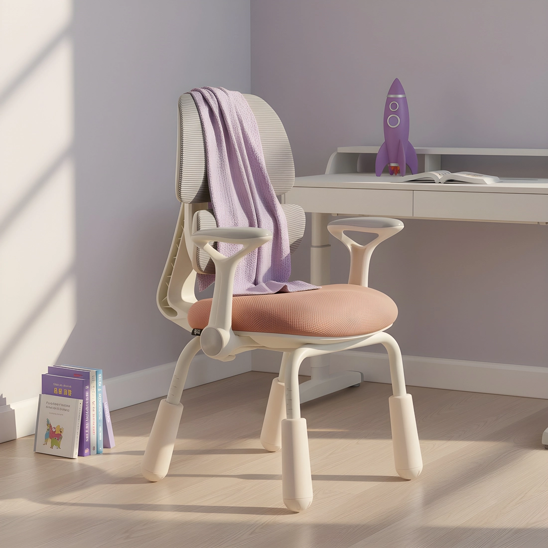 Każdy centymetr przestrzeni w pokoju dziecka jest na wagę złota. Projektanci krzesła Spacetronik XD doskonale to rozumieją, dlatego wyposażyli je w niezwykle praktyczną funkcję odchylanych podłokietników. Gdy krzesło nie jest używane, wystarczy jeden prosty ruch, aby unieść podłokietniki do pionu. Pozwala to na całkowite wsunięcie krzesła pod blat biurka, co zwalnia miejsce na podłodze do zabawy i ułatwia utrzymanie porządku. To proste, ale bardzo użyteczne rozwiązanie, które docenią zarówno dzieci, jak i rodzice dbający o organizację przestrzeni.