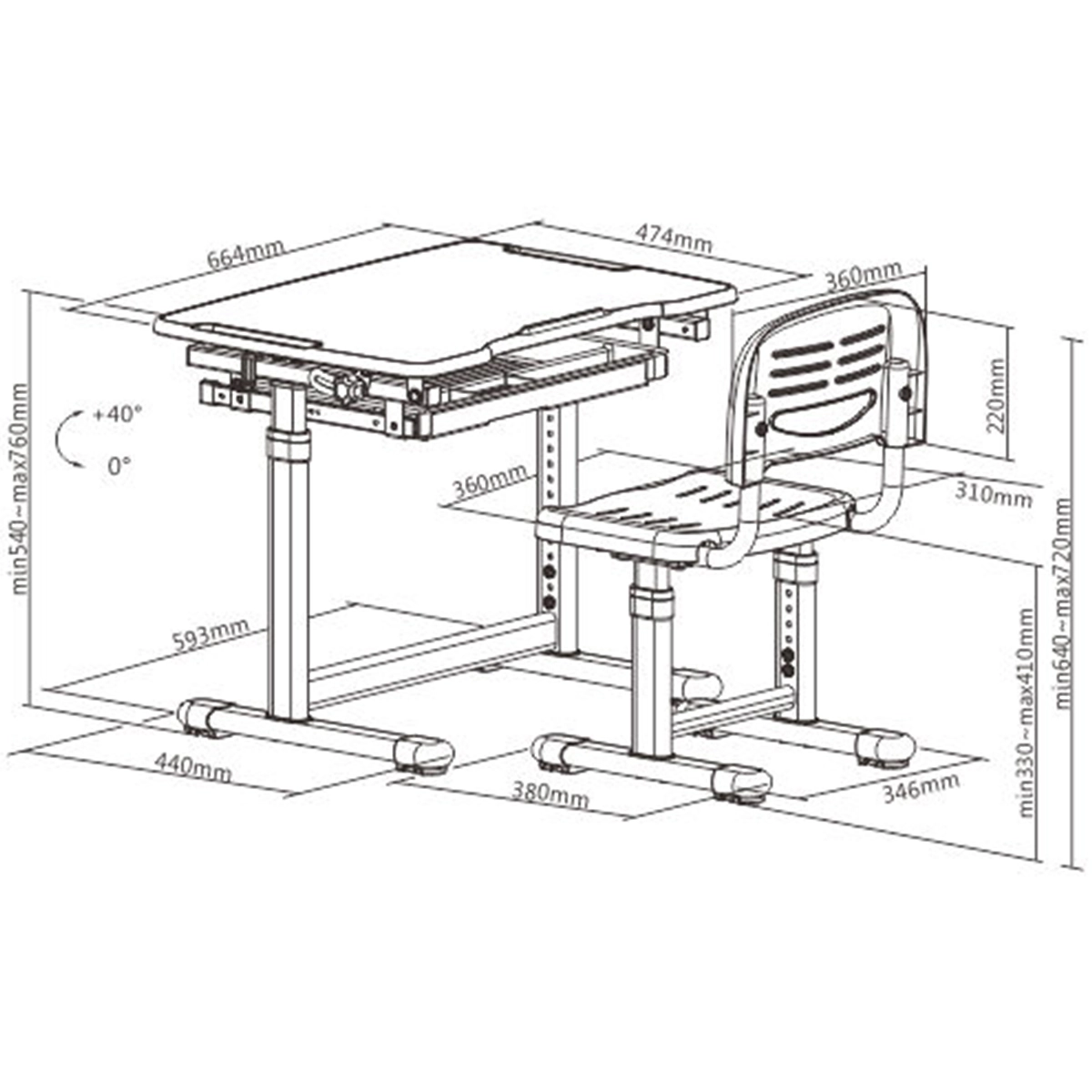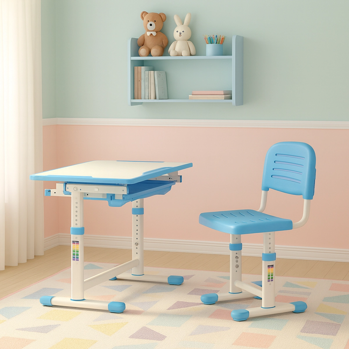 Rośnie razem z dzieckiem - Płynna regulacja wysokości biurka i krzesła gwarantuje idealne dopasowanie do wzrostu na każdym etapie rozwoju.
