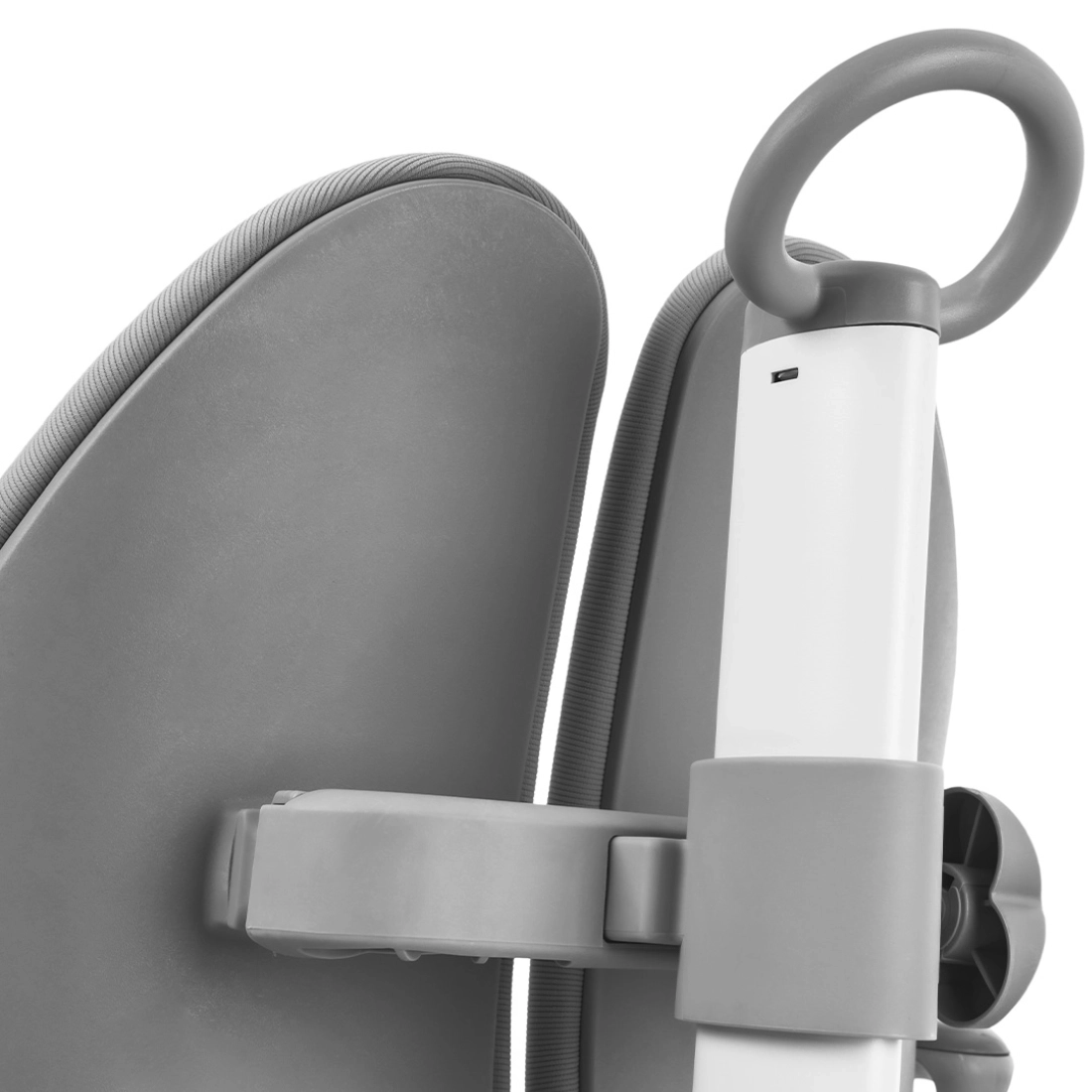 Spacetronik SPC-XD-05 dopasowuje sie do wzrostu dziecka (ok. 110–180 cm). Regulacja wysokosci oparcia i siedziska oraz glebokosci siedziska (12 cm) ulatwiaja ustawienie prawidlowego kata w kolanach i podparcia ud. Podwójne, elastyczne oparcie wspiera kregoslup, a kólka grawitacyjne z blokada (wl./wyl.) pomagaja utrzymac stabilna pozycje podczas nauki.