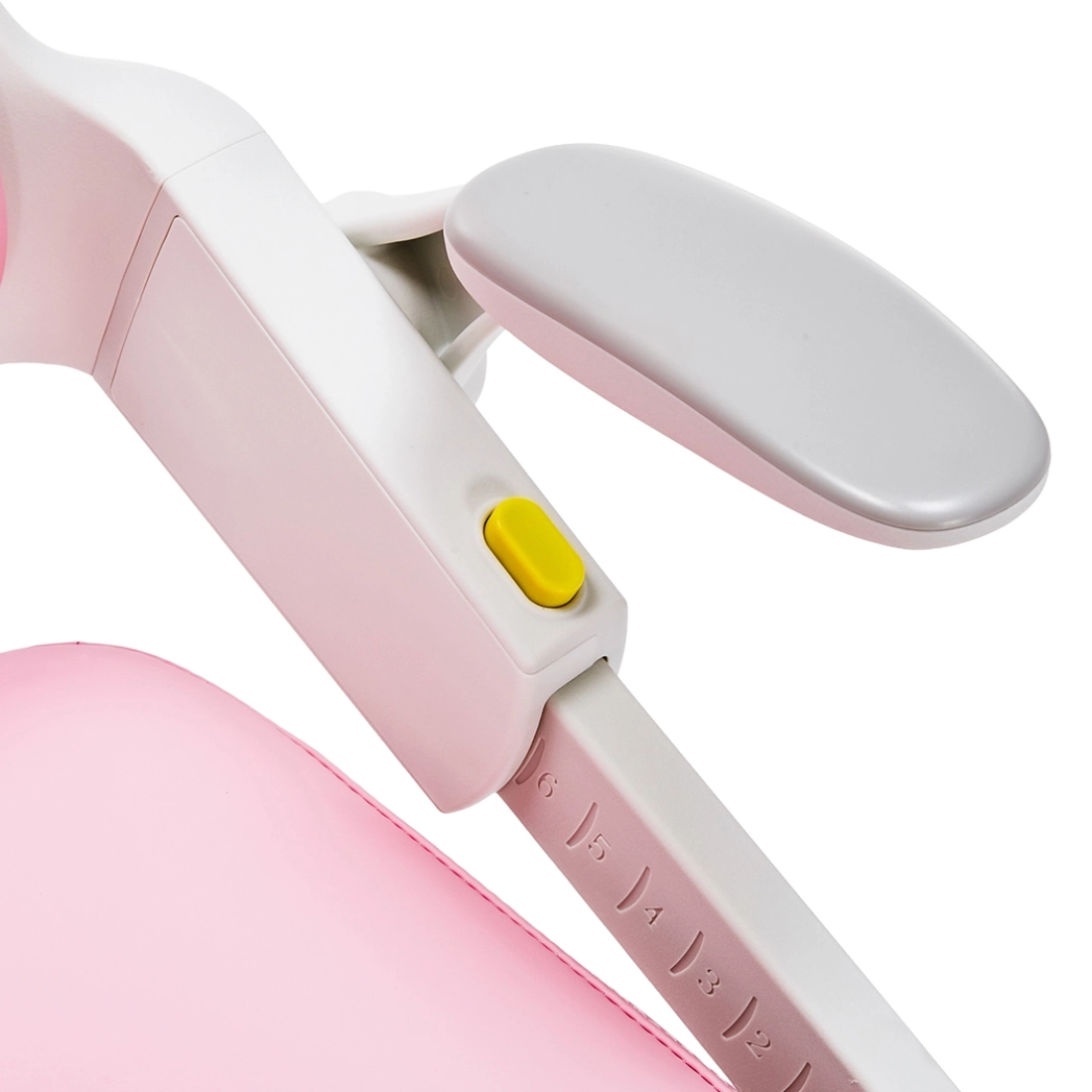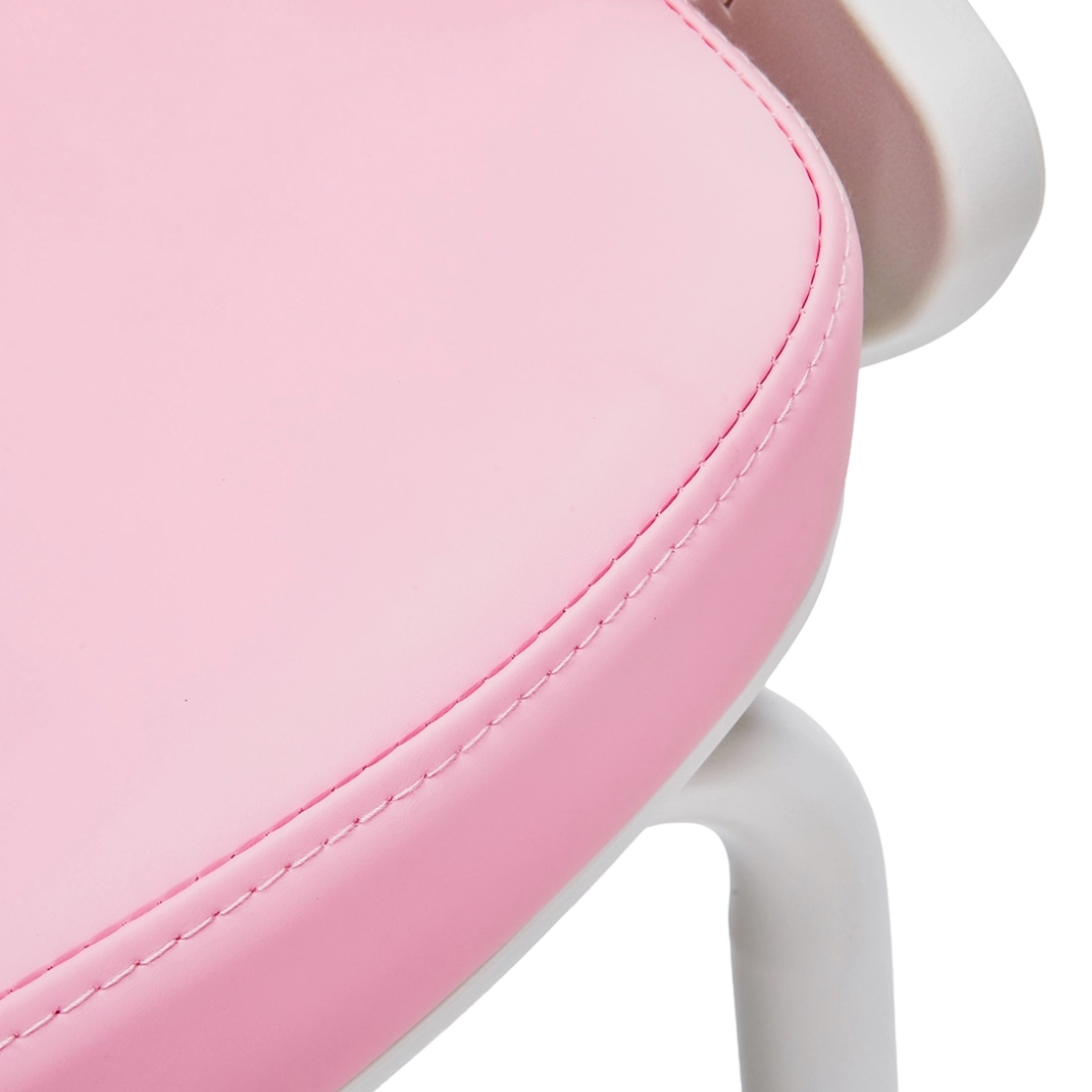 Nowoczesny design – Połączenie biało-różowego biurka i różowo-szarego krzesła pasuje do większości aranżacji pokoju dziecięcego.