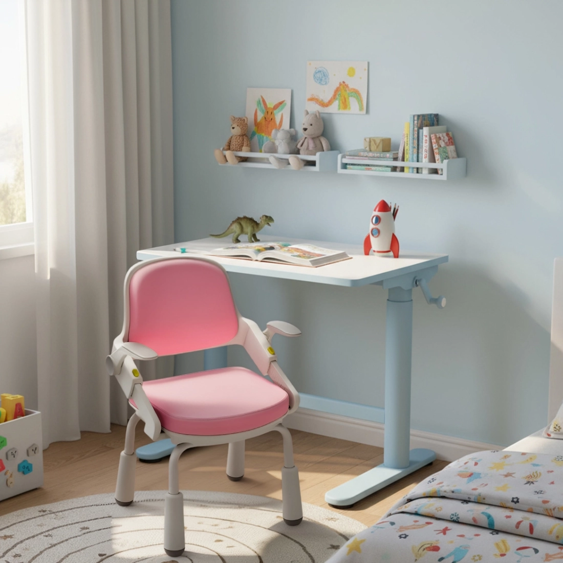 Kompletny zestaw do nauki, zabawy i kreatywnego rozwoju! W pakiecie otrzymujesz biurko z elektryczną regulacją wysokości SPE-X112P oraz ergonomiczne krzesło SPC-XD-11. Komplet rośnie wraz z dzieckiem (ok. 4–15 lat), wspiera prawidłową postawę, porządek i koncentrację. Biało-różowe biurko z blatem 100×50 cm i różowo-szare krzesło z miękką tapicerką to stylowy i bezpieczny duet, który doskonale wpisze się w nowoczesny pokój dziecka.