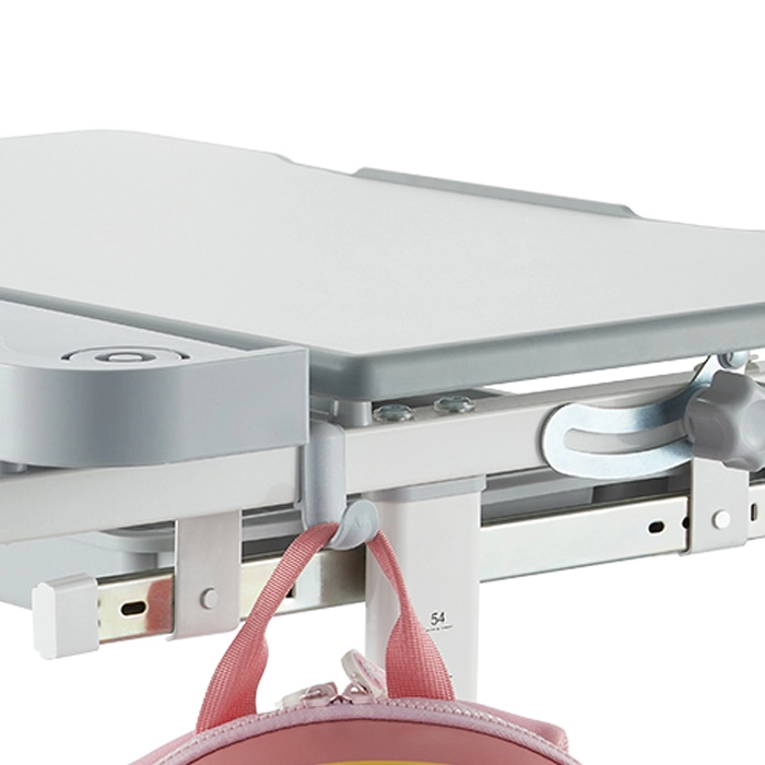 Praktyczny dodatek umieszczony z boku biurka, który umożliwia wygodne zawieszenie plecaka, torby lub słuchawek. Pozwala zaoszczędzić miejsce na blacie i utrzymać porządek wokół stanowiska pracy dziecka. Dzięki solidnej konstrukcji zapewnia stabilność i bezpieczeństwo przechowywanych przedmiotów, chroniąc je przed przypadkowym upadkiem.