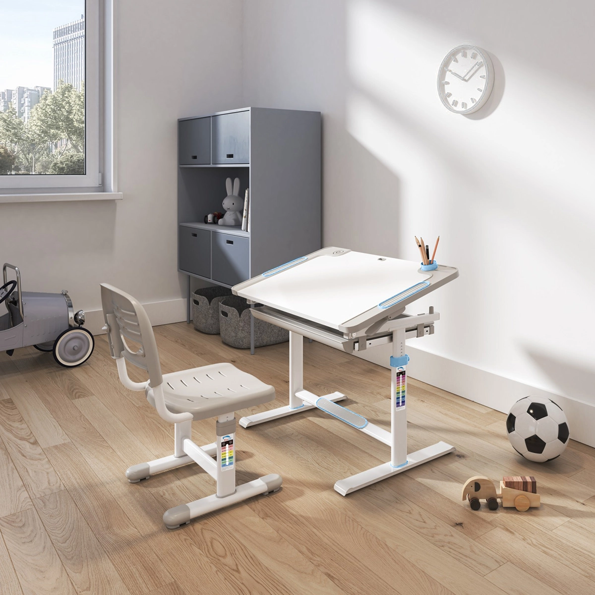 Zestaw - ergonomiczne krzesło do biurka dla dziecka i regulowane biurko dziecięce 80x50 cm Spacetronik XD (biały/niebieski)