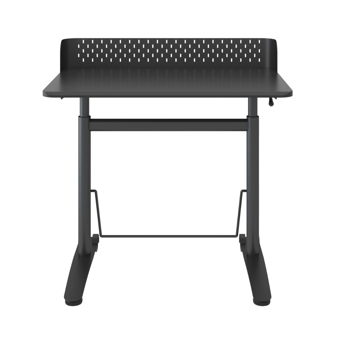 To czarne stanowisko robocze ułatwia ustawienie wygodnej wysokości do pracy i nauki. Regulacja w zakresie 66,7–100,3 cm pozwala dopasować pozycję do potrzeb użytkownika, a większy blat 90 × 60 cm zapewnia więcej miejsca na sprzęt i akcesoria.
