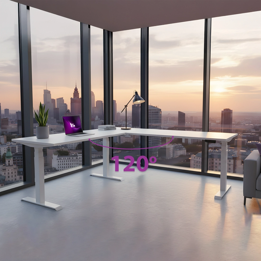 Elektryczny stelaż biurkowy narożny Spacetronik SPE-303VW (Biały) – Ergonomia i przestrzeń w układzie 120 stopni