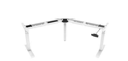 • Elektryczny stelaż biurkowy 120° z trzema silnikami z regulacją 3-kolumnową w zakresie 600-1230mm oraz max. udźwigiem do 150kg. Szybkość regulacji to 38mm/s. Szer. blatu: 600-800mm, dł. blatu: 1400-2100mm (2x).