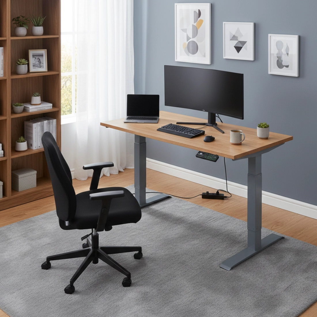 Dzięki wykorzystaniu dwóch silników, stelaż elektryczny pozwala na płynne unoszenie i opuszczanie biurka pod naciskiem do 100 kilogramów. Wysokiej jakości silniki zmieniają pozycję biurka z prędkością do 25mm/s co pozwala na szybkie i bezproblemowe dostosowanie wysokości biurka. Całość jest bardzo cicha, maksymalny poziom hałasu to 45-50dB.