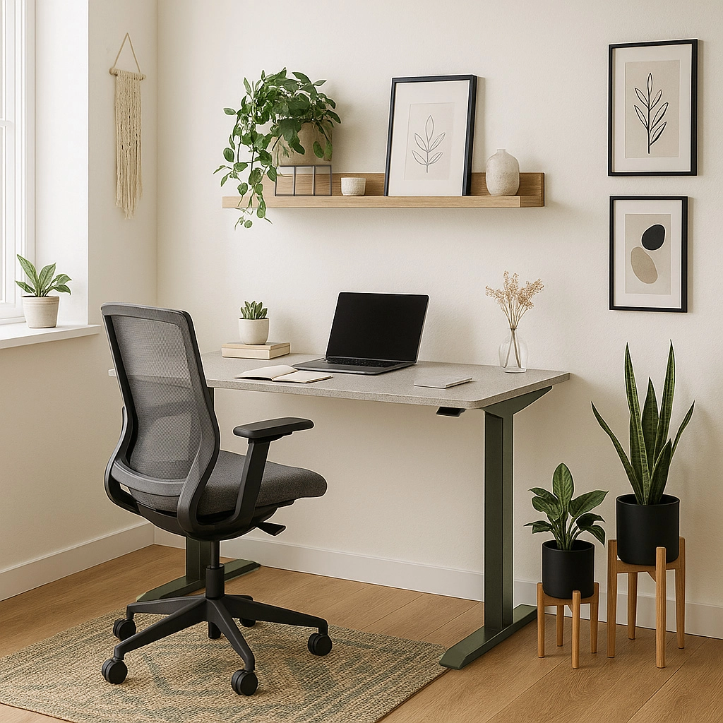 Dzięki wykorzystaniu 3 segmentów podnoszących stelaż, jest stabilny i pozwala podnosić biurko na wysokość aż 127cm. Dzięki temu można pracować komfortowo zarówno w pozycji stojącej jak i siedzącej. Stelaż posiada kwadratowy kształty kolumn, przez co sprawdzi się w każdych wnętrzach, również w tych nowoczesnych.