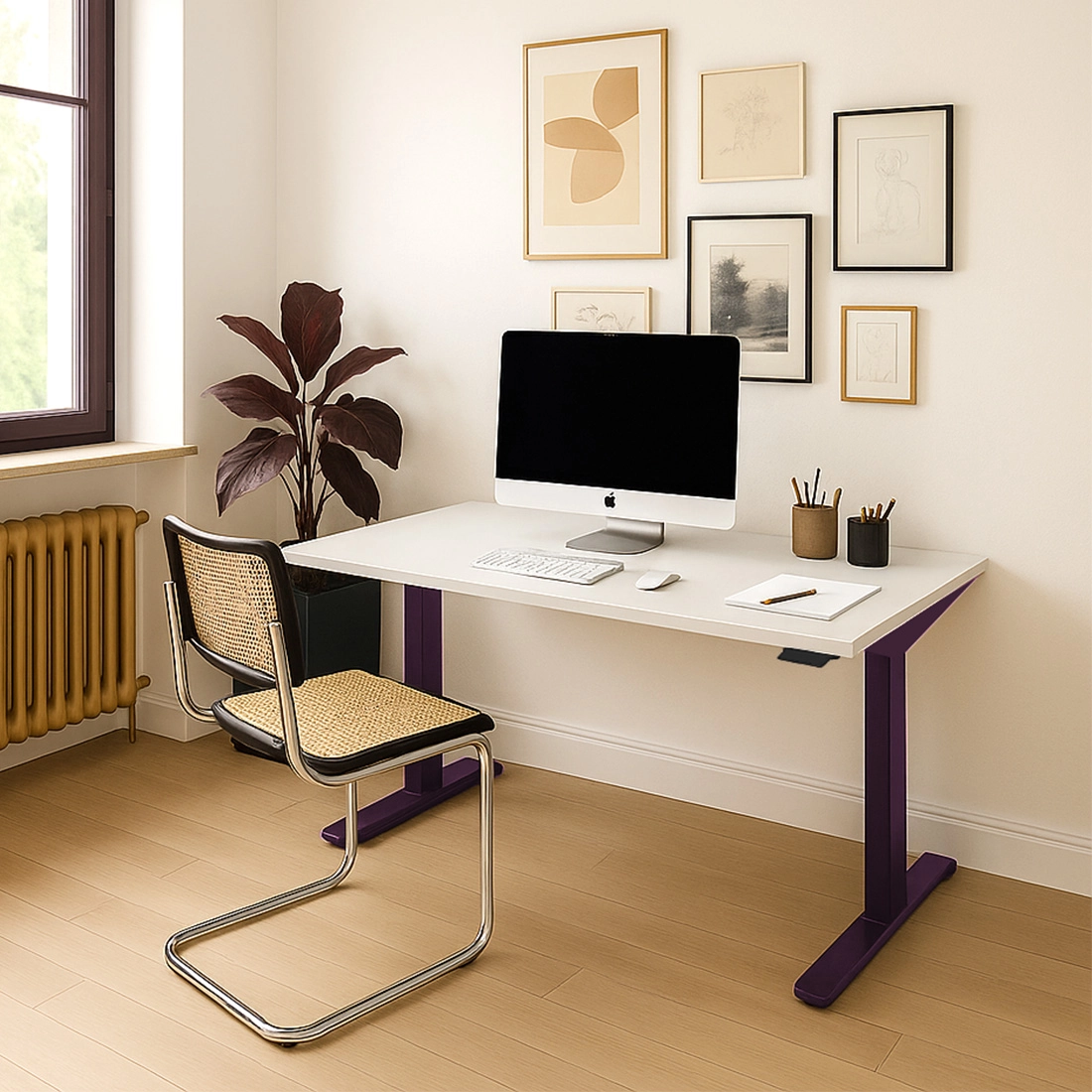 Spacetronik SPE-232O w kolorze fioletowym to stelaż elektryczny, na którym zbudujesz prawdziwe ergonomiczne biurko z elektryczną regulacją. Rama elektryczna posiada dwa silniki zapewniające szybką i płynną zmianę wysokości blatu. Regulacja daje poczucie komfortu i możliwość dopasowania indywidualnych potrzeb pracownika, a także może wpłynąć na efektywność pracy. Elektrycznie regulowane biurko umożliwia codzienną pracę w pozycji stojącej, co korzystnie wpływa na chociażby krążenie, czy też na mniejsze ryzyko przybrania dodatkowych kilogramów. Stojąc, możemy także zdecydowanie łatwiej utrzymać prawidłową postawę ciała - za co podziękuje nam przede wszystkim nasz kręgosłup. Kontroler do sterowania został wyposażony w nowoczesny wyświetlacz OLED, a przyciski są podświetlane kilkoma kolorami naprzemiennie.