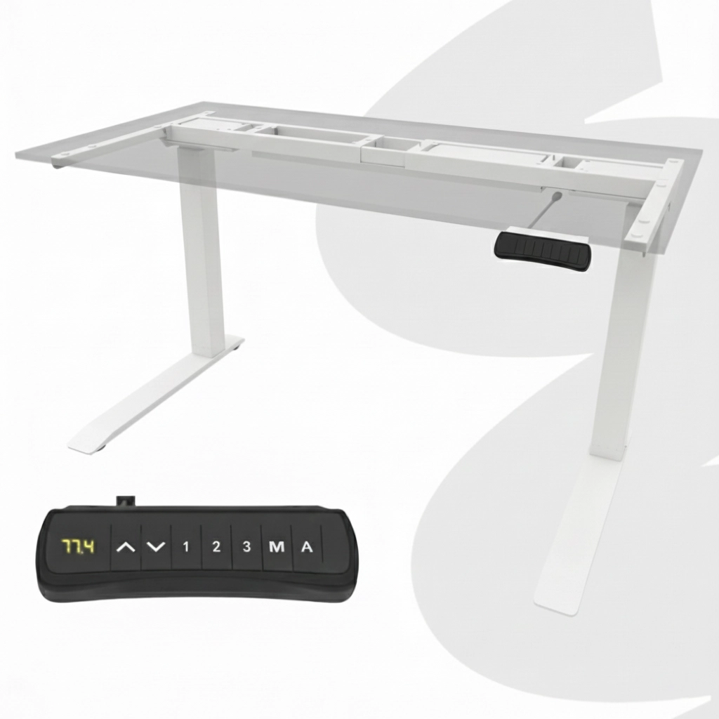 - Zawartość zestawu: Stelaż elektryczny (do montażu), kontroler, zasilacz, okablowanie, instrukcja obsługi, elementy montażowe. (Zestaw nie zawiera blatu).
