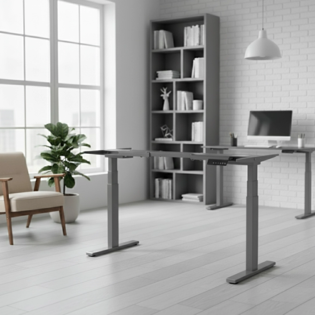 Zaawansowany napęd elektryczny zapewnia szybką i cichą zmianę wysokości, dzięki czemu możesz dostosować biurko bez przerywania pracy. Panel sterowania z cyfrowym wyświetlaczem LED pokazuje aktualną wysokość z wysoką dokładnością, a 3 programowalne pozycje pamięci pozwalają błyskawicznie przełączać się między ulubionymi ustawieniami – na przykład dla pracy siedzącej, półstojącej i stojącej.