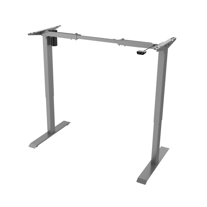 Stelaż jest wyposażony w pojedynczy silnik zapewniający sprawną i płynną zmianę wysokości blatu. Regulacja daje poczucie komfortu i możliwość dopasowania indywidualnych potrzeb pracownika, a także może wpłynąć na efektywność pracy.