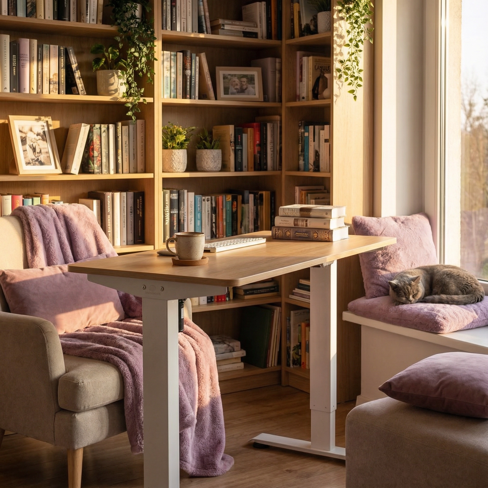 Biurko z regulowaną wysokością pozwala dopasować blat do wzrostu użytkownika, bez konieczności „dostosowywania się” do mebla. Praca stojąco-siedząca wspiera krążenie, ogranicza przeciążenia i może poprawiać koncentrację. To praktyczna inwestycja w zdrowie i efektywność – w domu i w biurze.