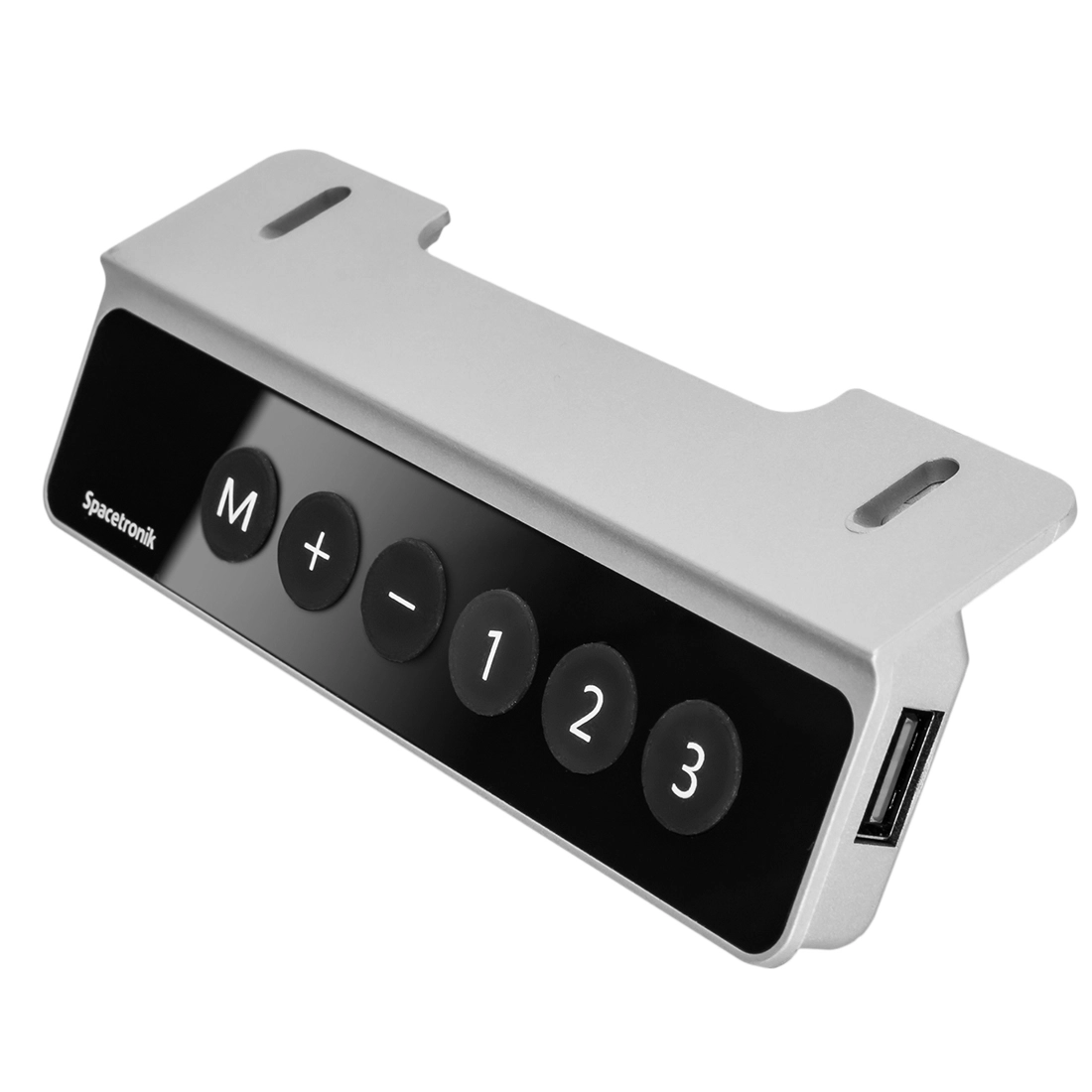 Aktualna wysokość biurka jest widoczna na wyświetlaczu LED. Zapisz do 4 ulubionych ustawień i wracaj do nich jednym przyciskiem — np. dla pozycji siedzącej i stojącej. Dodatkowa blokada kontrolera pozwala ograniczyć przypadkowe użycie.