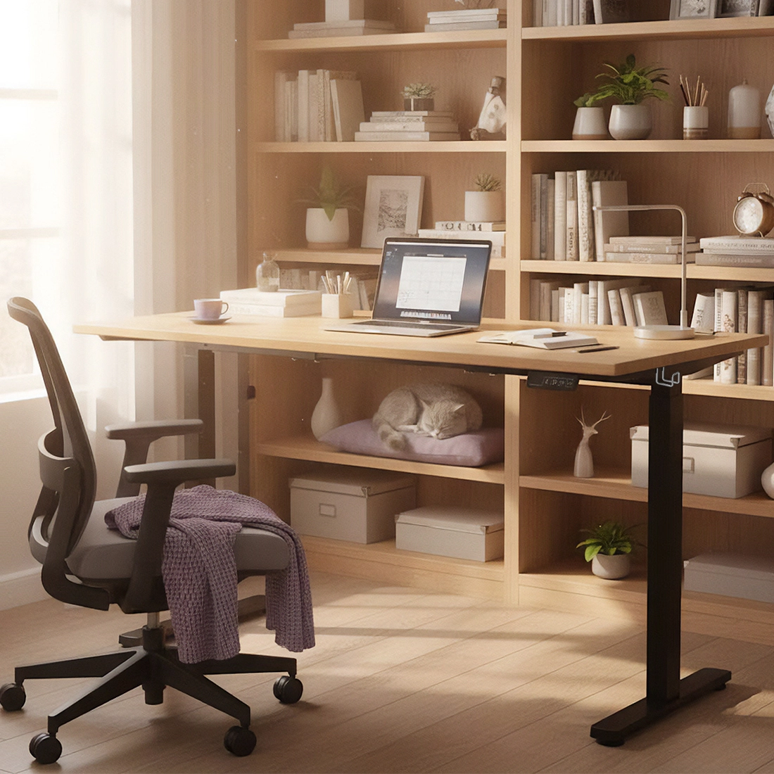 Płynna Regulacja Wysokości (71-116 cm): Idealnie dopasuj wysokość blatu do swojego wzrostu, zapewniając sobie ergonomiczną pozycję zarówno na siedząco, jak i na stojąco.