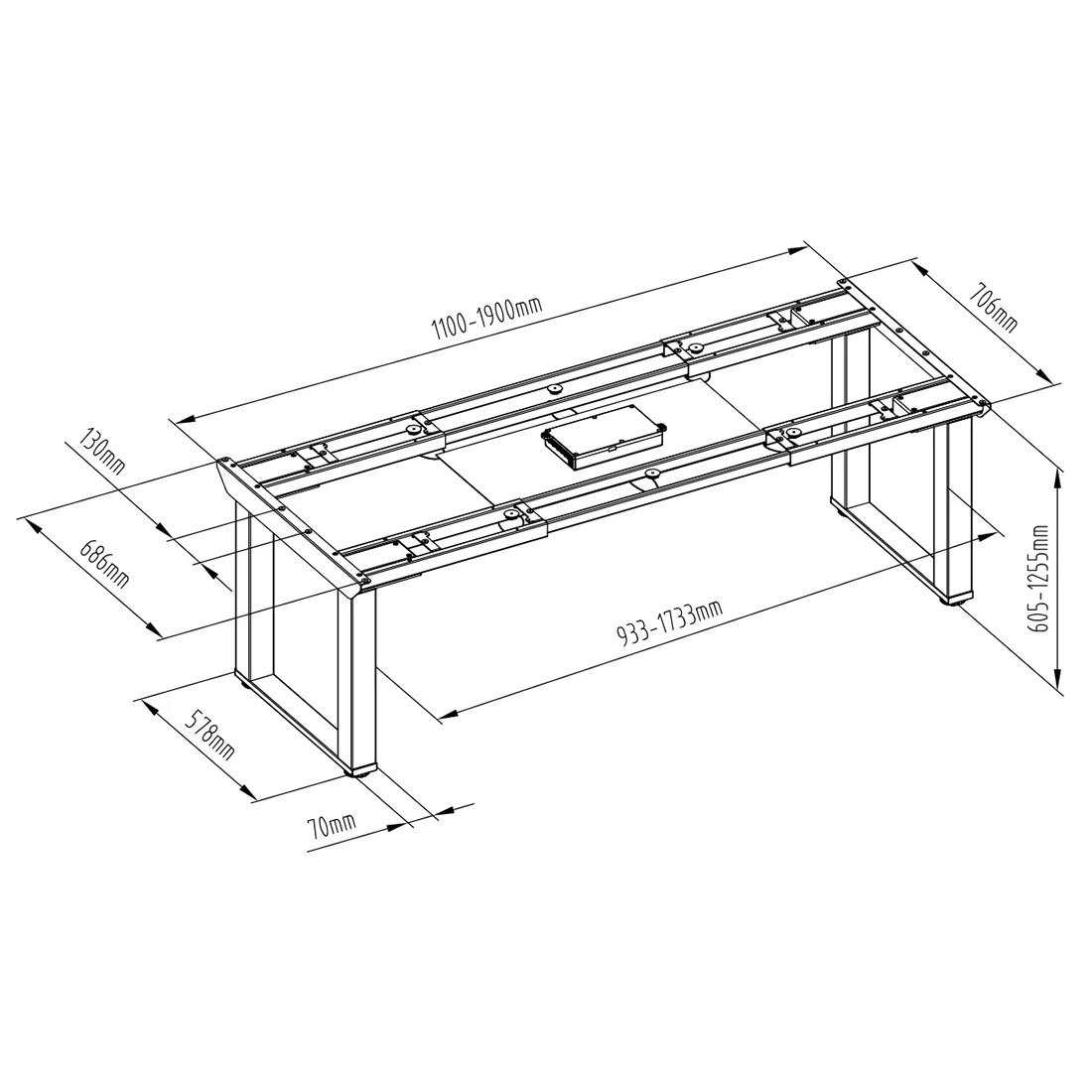 - Zakres regulacji: 605 - 1255 mm,