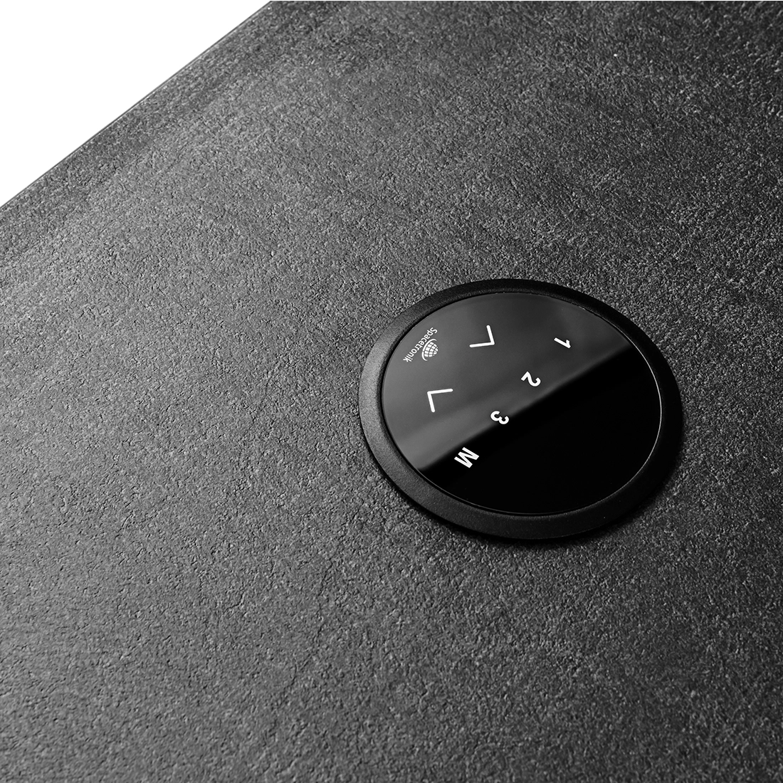 Przyciski góra/dół pozwalają na łatwe dostosowanie idealnej wysokości blatu. Zapamiętaj do trzech pozycji i wróć do każdej z nich naciskając dedykowany przycisk. Regulacja stelaża z elektryczną regulacją Spacetronik jest niezwykle intuicyjna.
