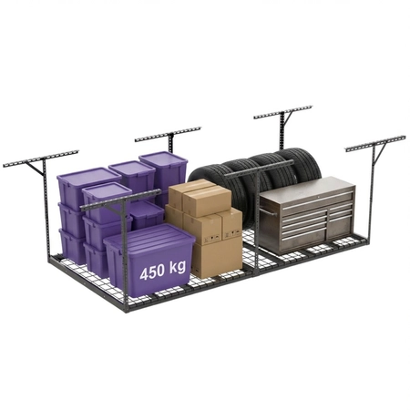 Udźwig 450 kg – bezpieczne przechowywanie ciężkiego sprzętu nad samochodem.